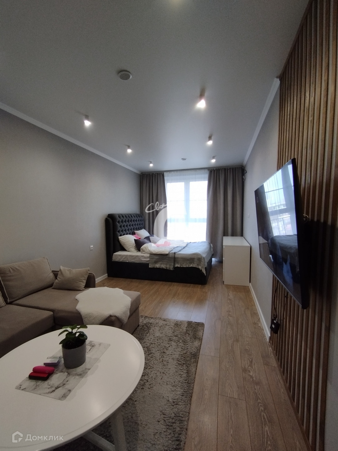 В квартире сделан качественный ремонт, есть мебель и бытовая техника, из окна вид на город.