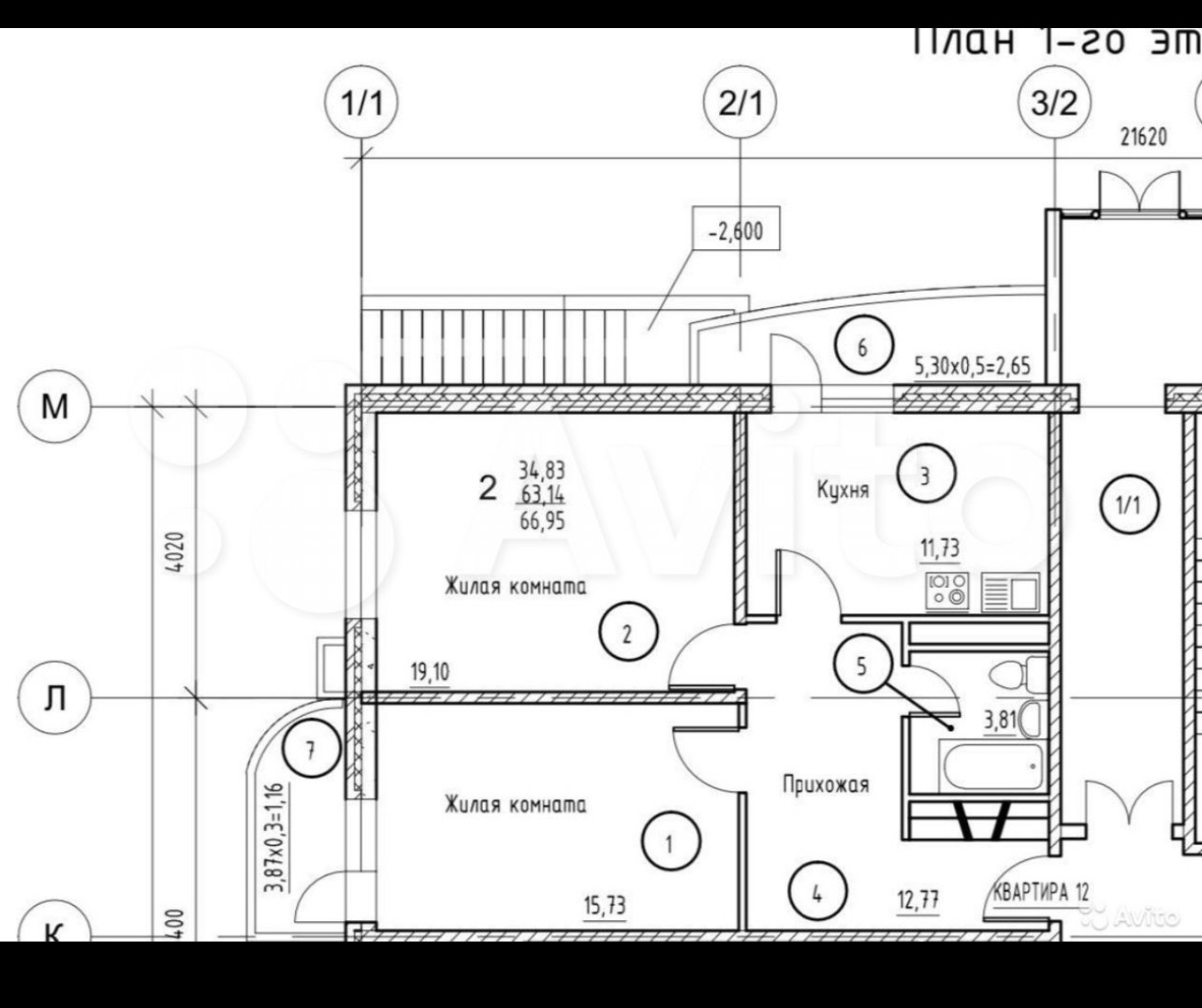Общая площадь 67 м2
