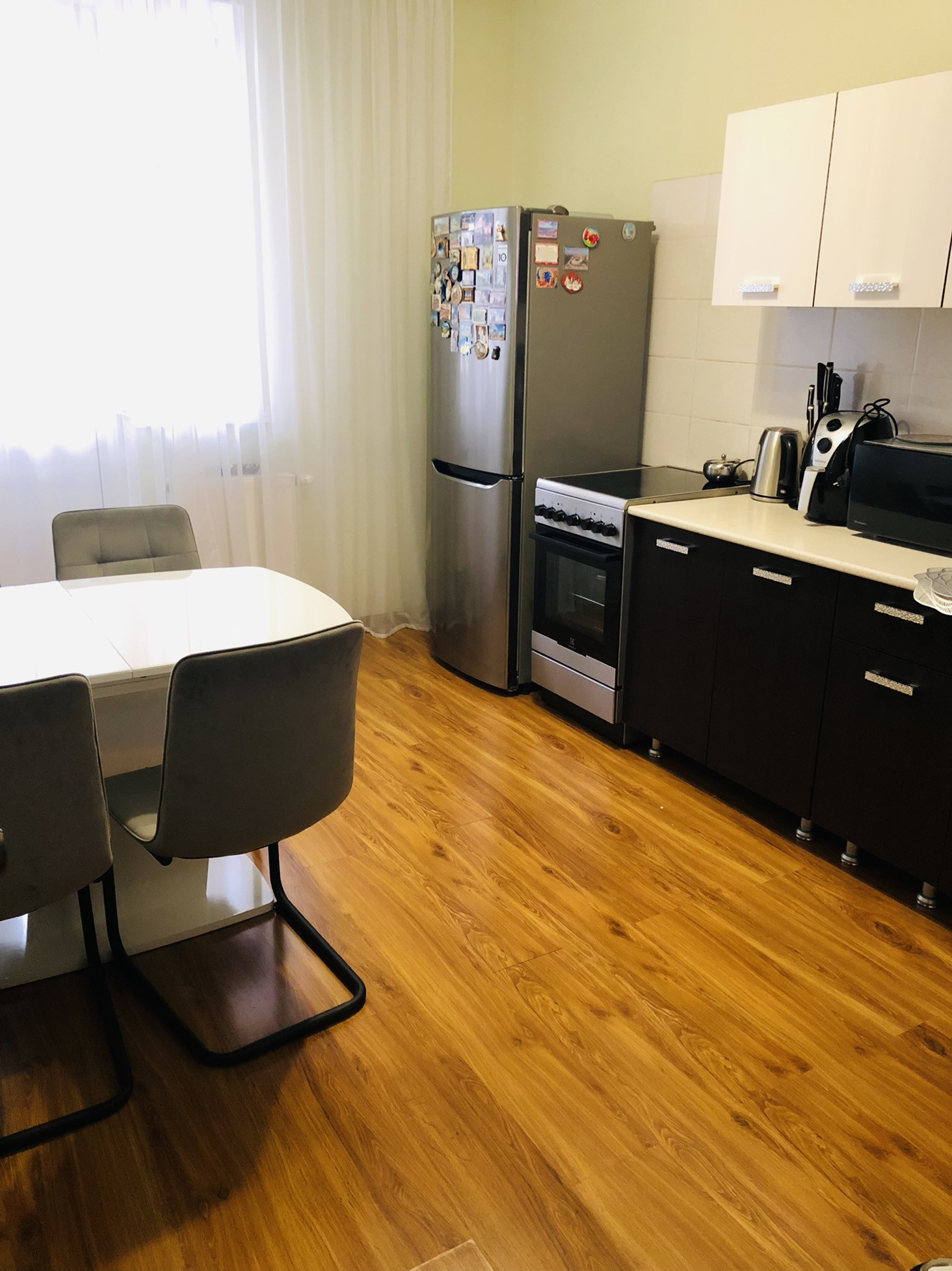 Квартира на 16 этаже,  в хорошем состоянии, с ремонтом от застройщика, техникой и мебелью. Остаётся почти вся мебель: сплит-система, стиральная машина, 2 шкафа-купе, кухонный гарнитур и многое другое.