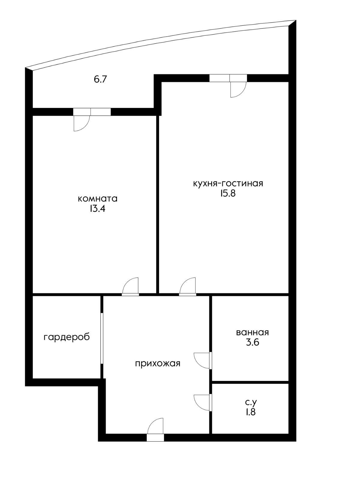 Жилая площадь 13.4 м2