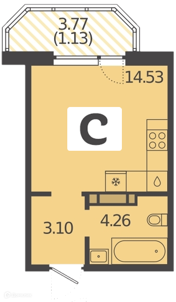 Квартира студия, 22.84 м2, этаж 14 / 19, на продажу в Краснодаре, улица Красных Партизан, 1/3