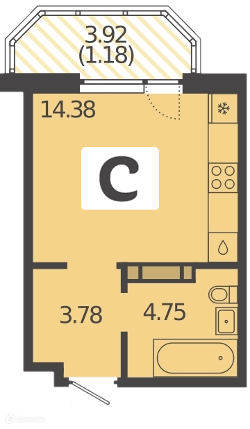 Квартира студия, 23.97 м2, этаж 7 / 19, на продажу в Краснодаре, улица Красных Партизан, 1/3