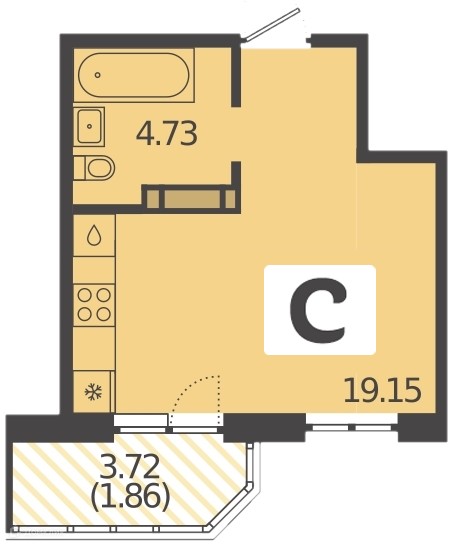 Квартира студия, 25.45 м2, этаж 9 / 19, на продажу в Краснодаре, улица Красных Партизан, 1/3
