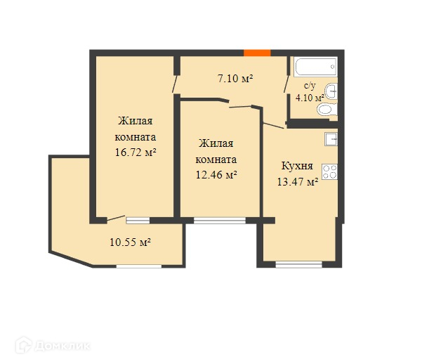 Общая площадь 53.8 м2