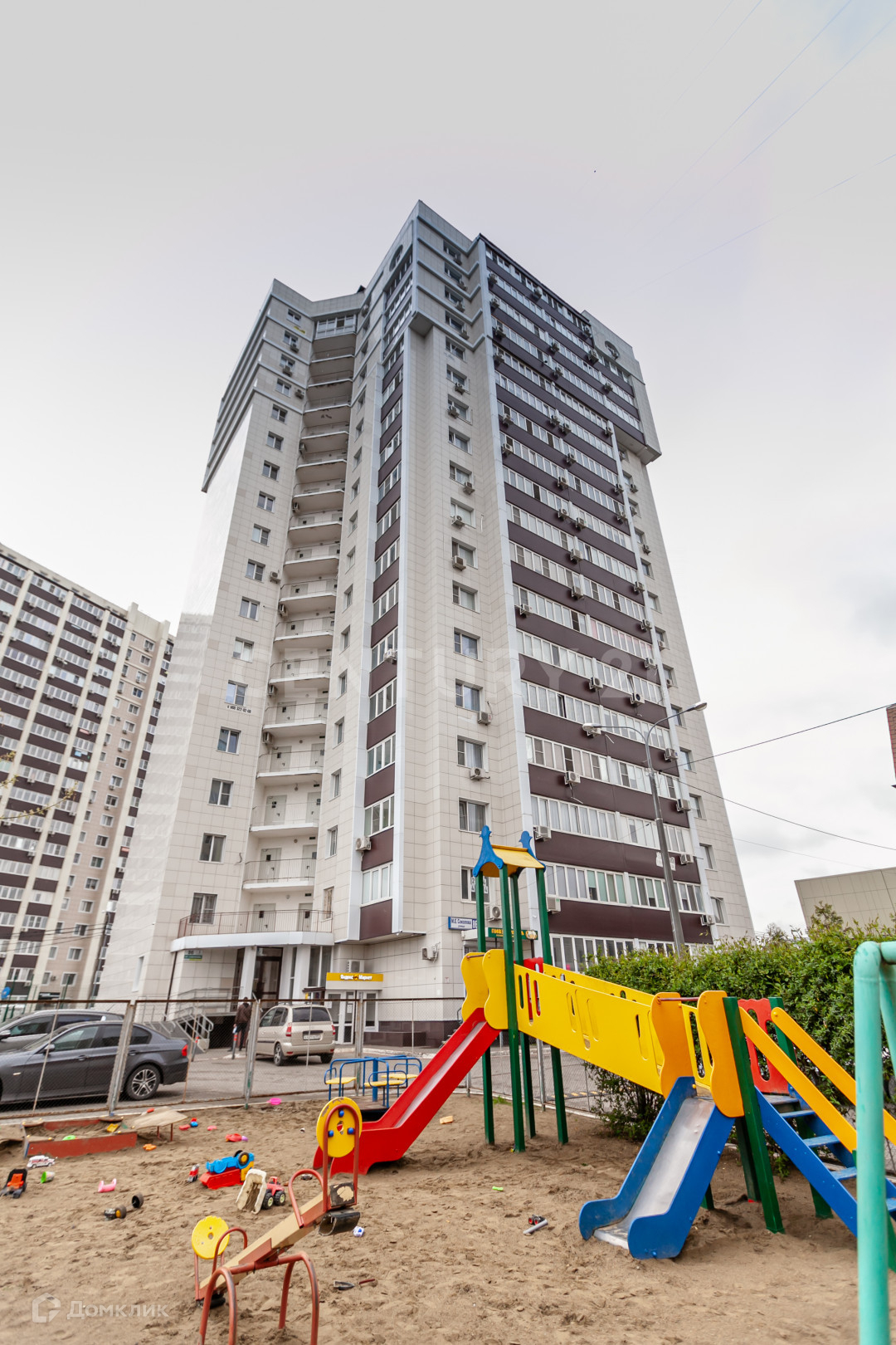 Двор благоустроен детскими площадками, места для занятия спортом, парковка для машин.