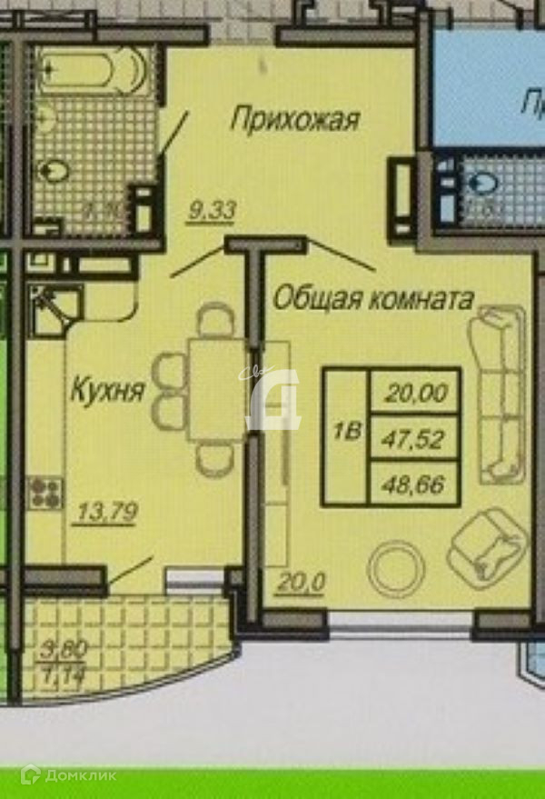 Общая площадь 47 м2