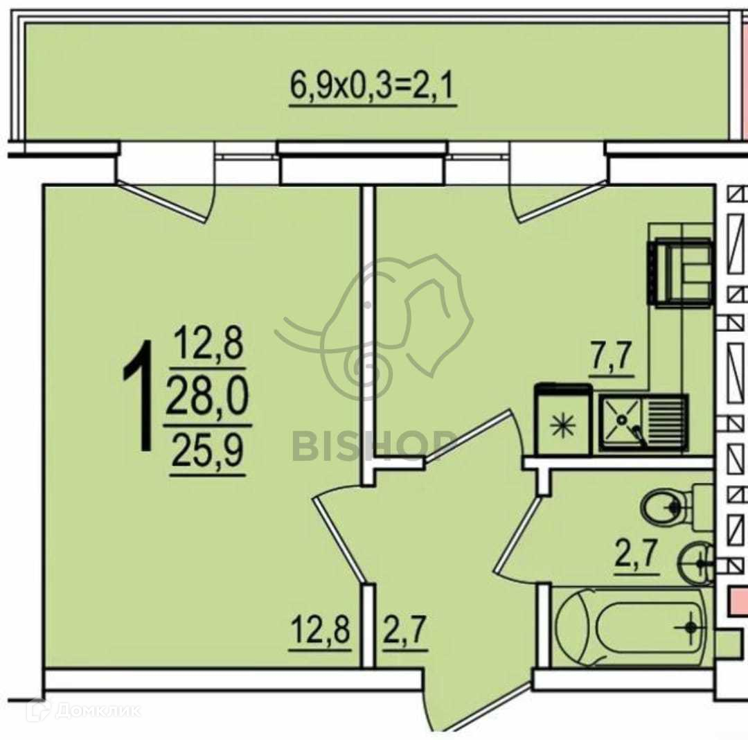 Общая площадь 25.9 м2