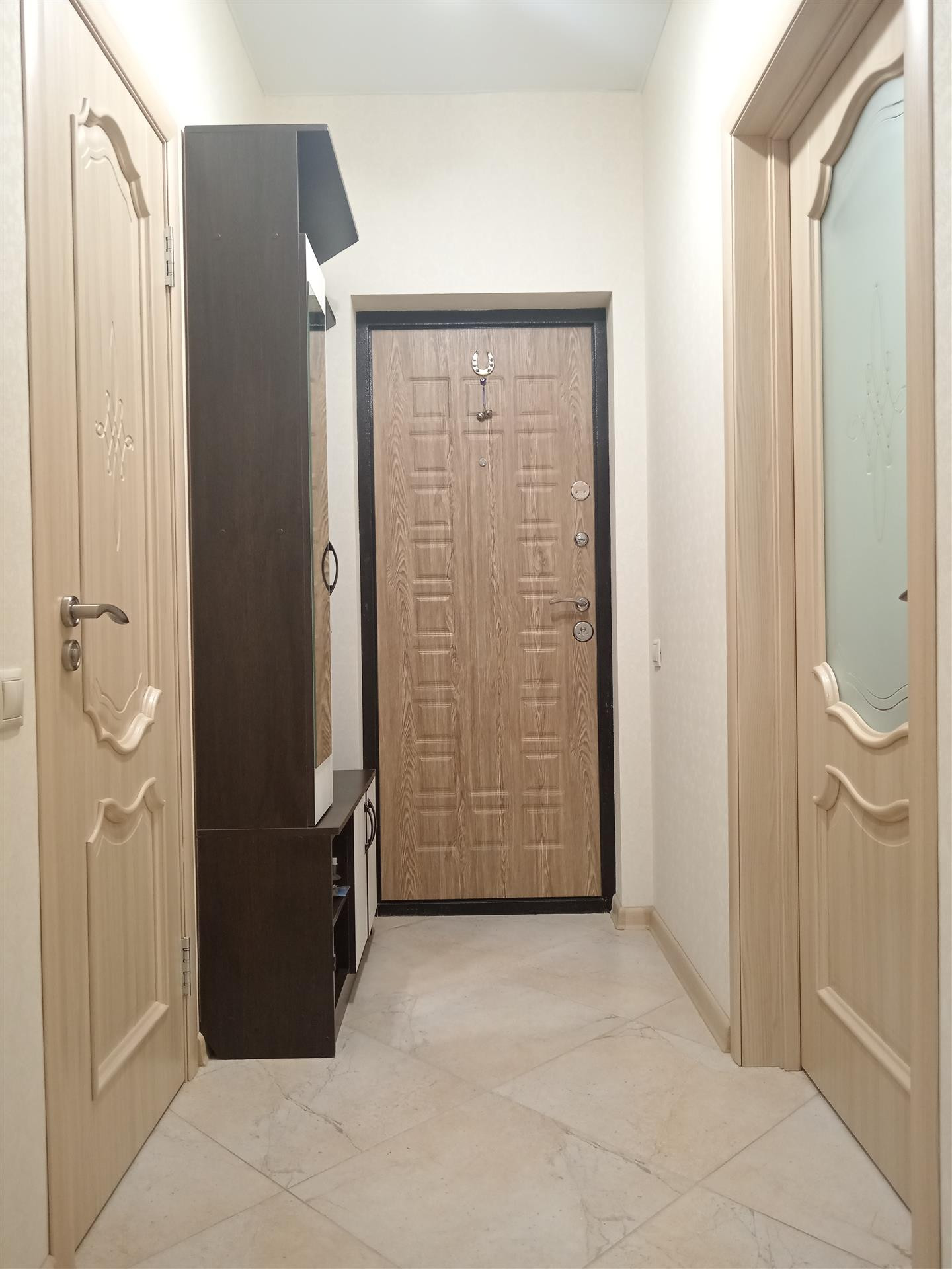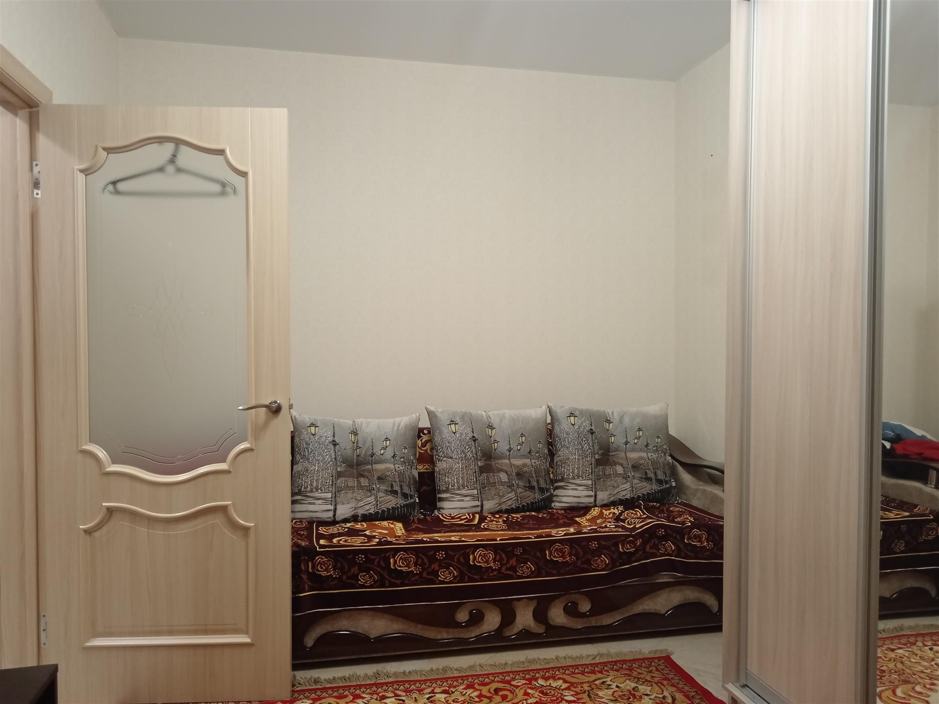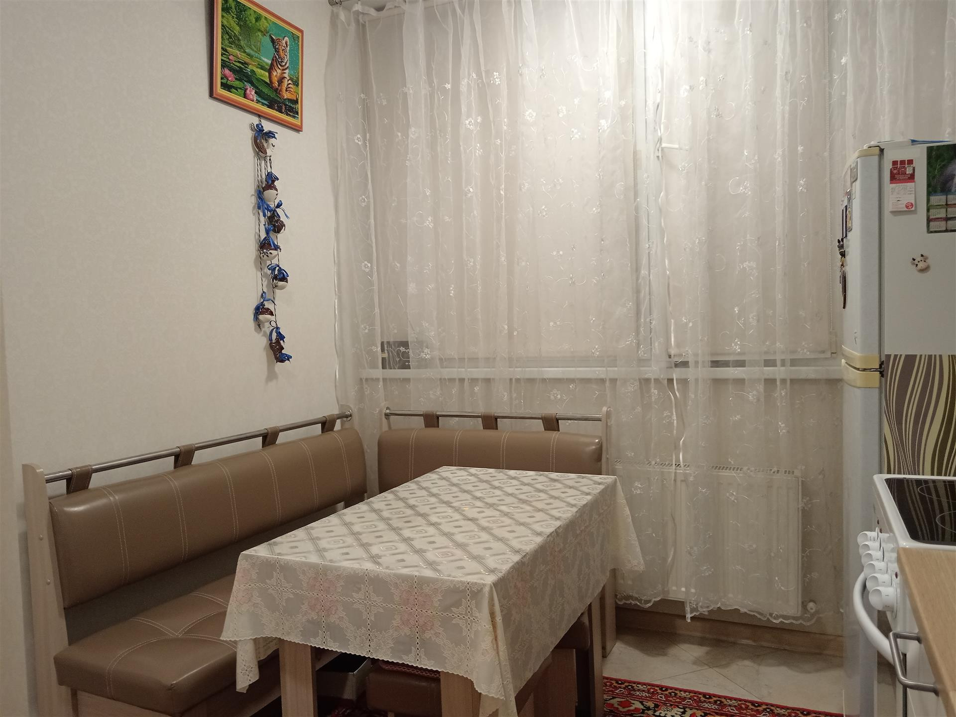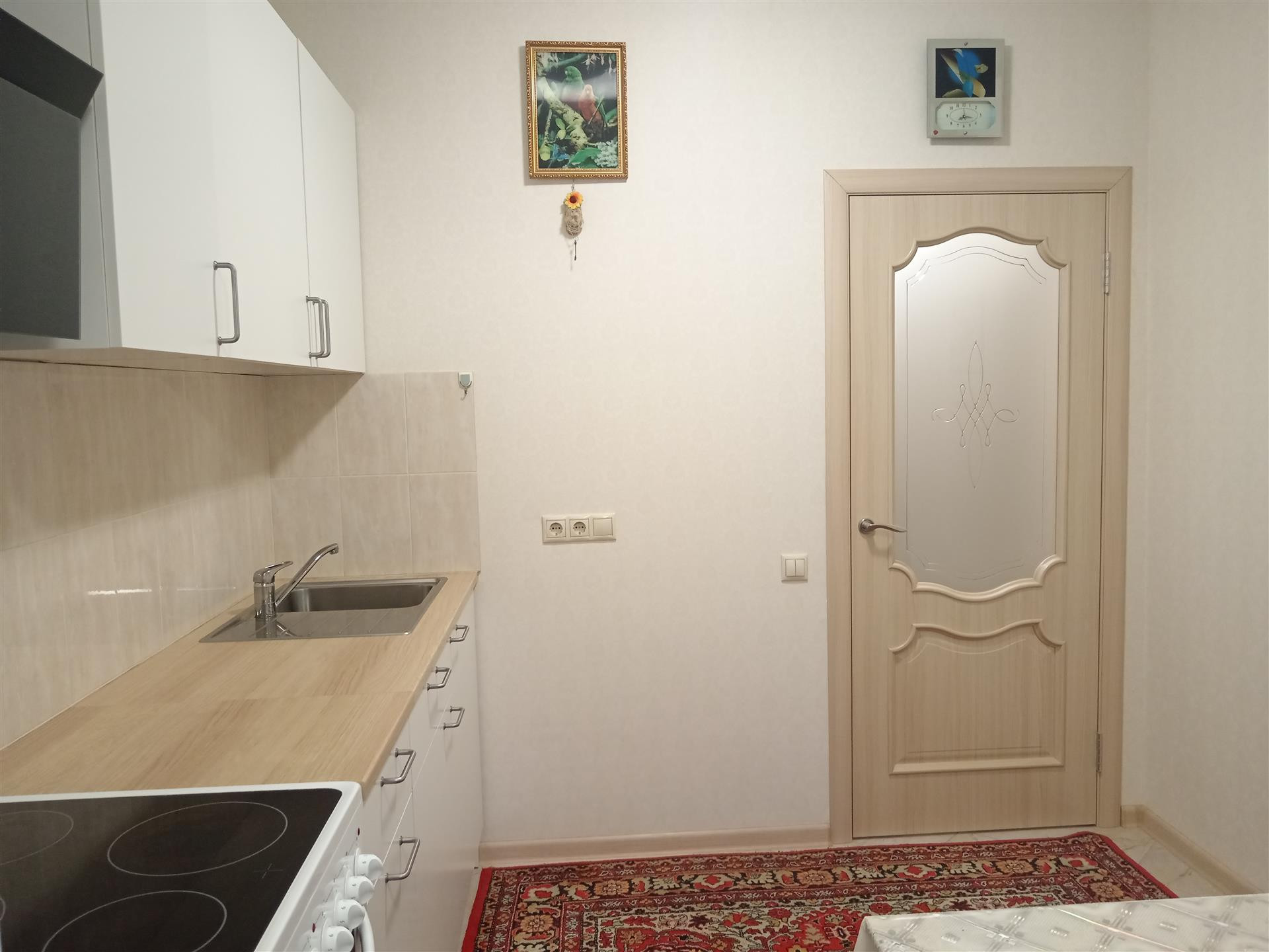 Встречает новых жильцов надежная  дверь,распахнув которую Вы попадаете в  уютный райский уголок, площадью 32 м2 с учетом широкого балкона,который заботливо утеплен,оснащен светом,теплым полом и подготовлен под кабинет.Комната и кухня сияют люстрами и светильниками,розетки продуманы для каждого предмета мебели и бытовой техники.