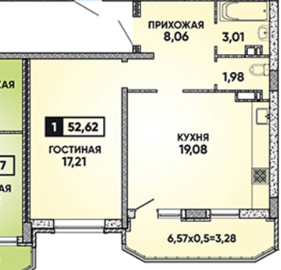 Общая площадь 52 м2