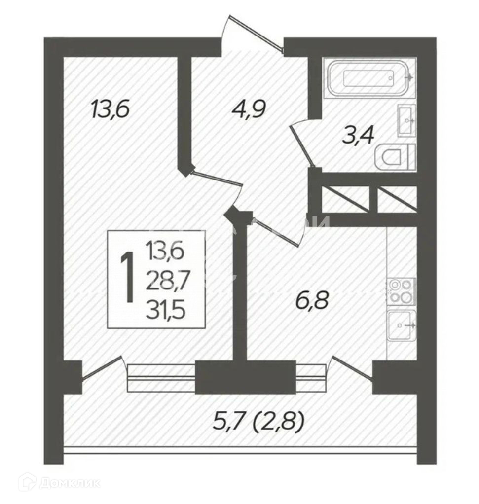 Общая площадь 29.8 м2