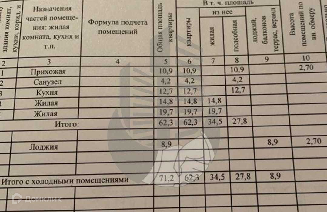 Общая площадь 71 м2