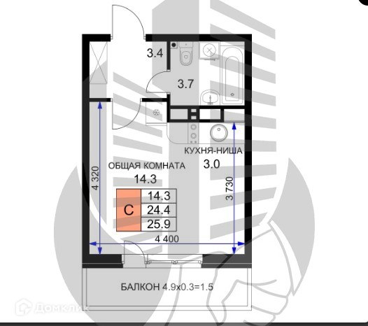 Общая площадь 26 м2