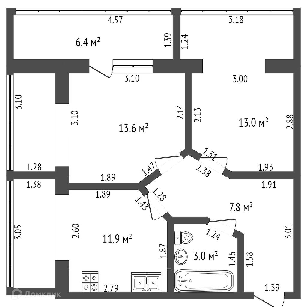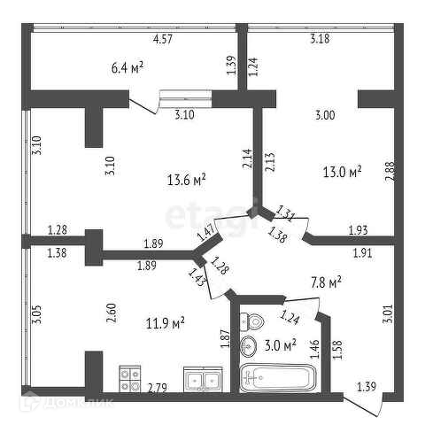 Общая площадь 49.3 м2