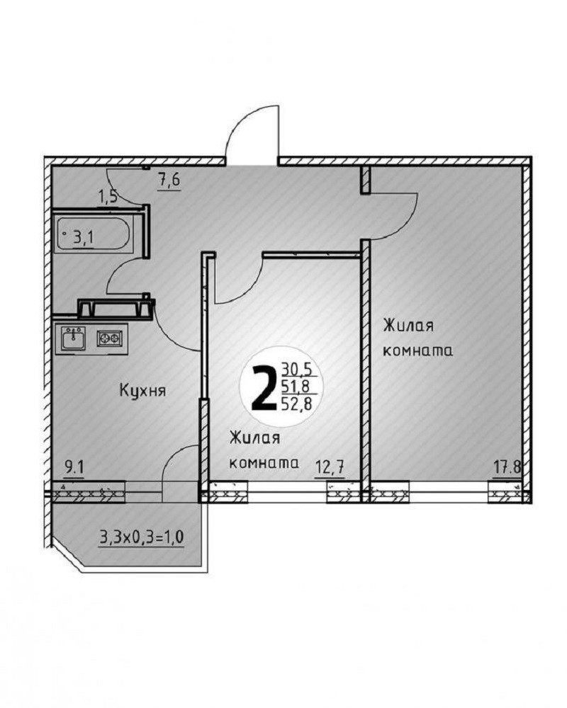 Общая площадь 55 м2