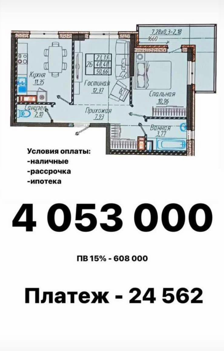 Общая площадь 50.66 м2