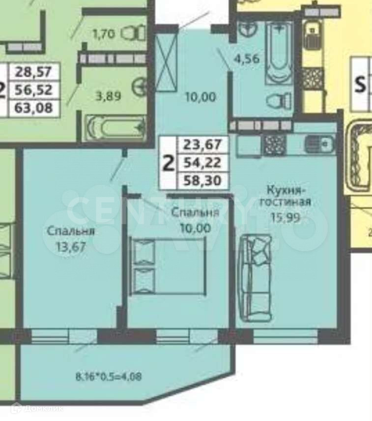 Общая площадь 58 м2