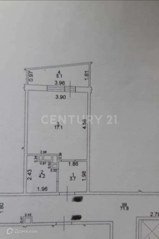 Жилая площадь 17.1 м2