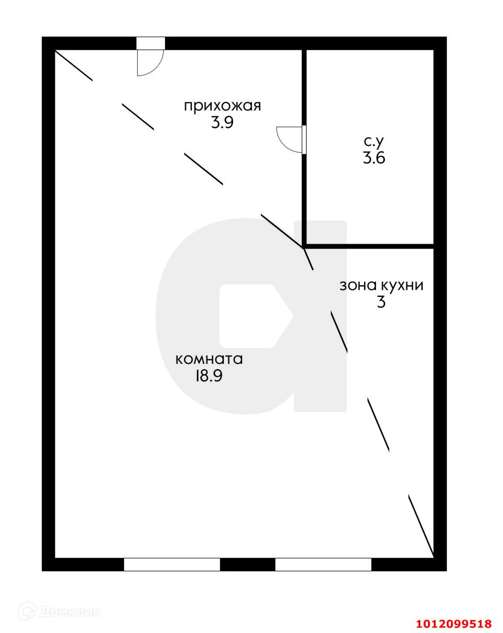Квартира студия, 29.4 м2, этаж 3 / 3, на продажу в Краснодаре, Гаражный переулок, 12/3к1