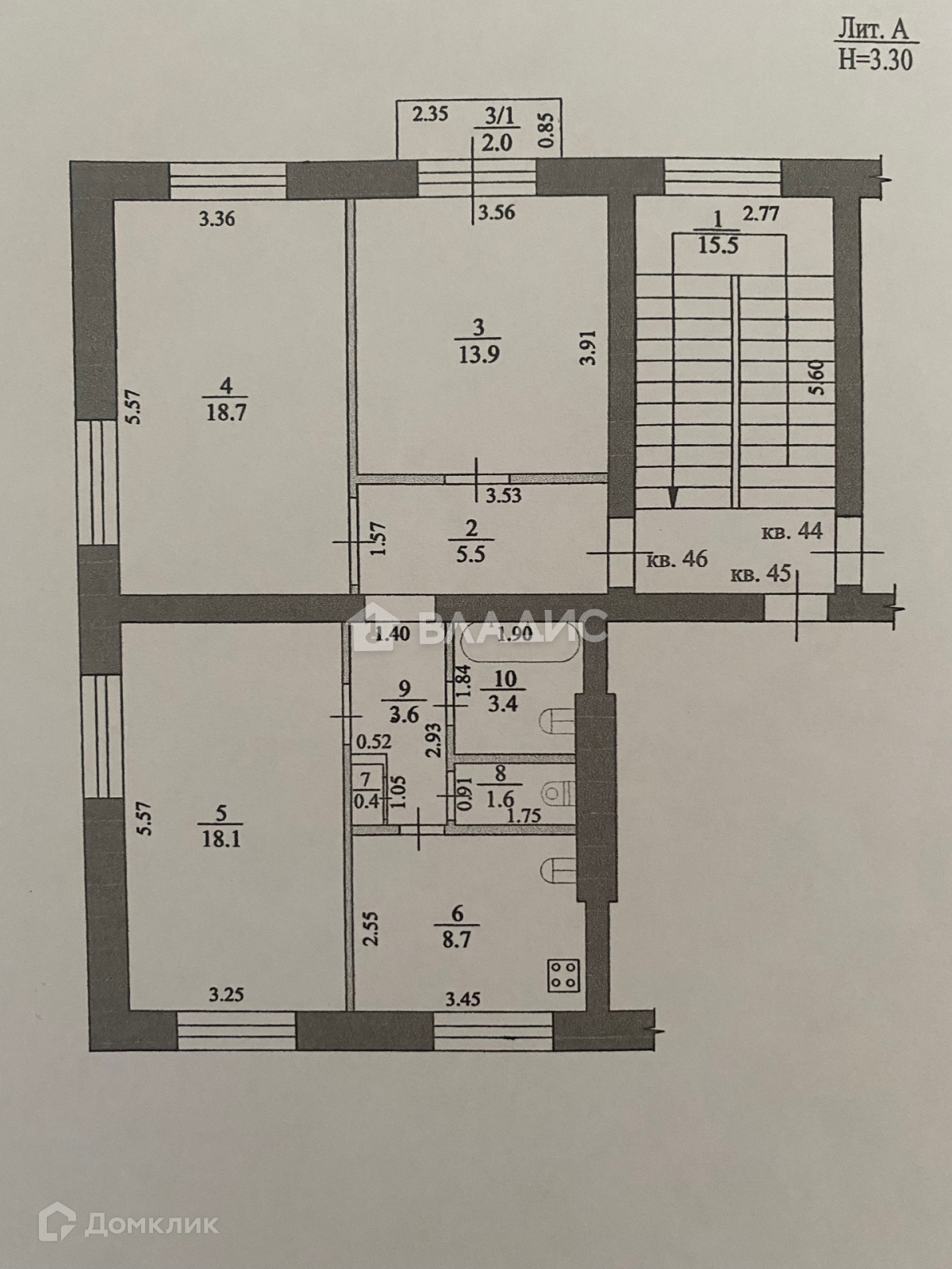 Высота потолков 3.3 м