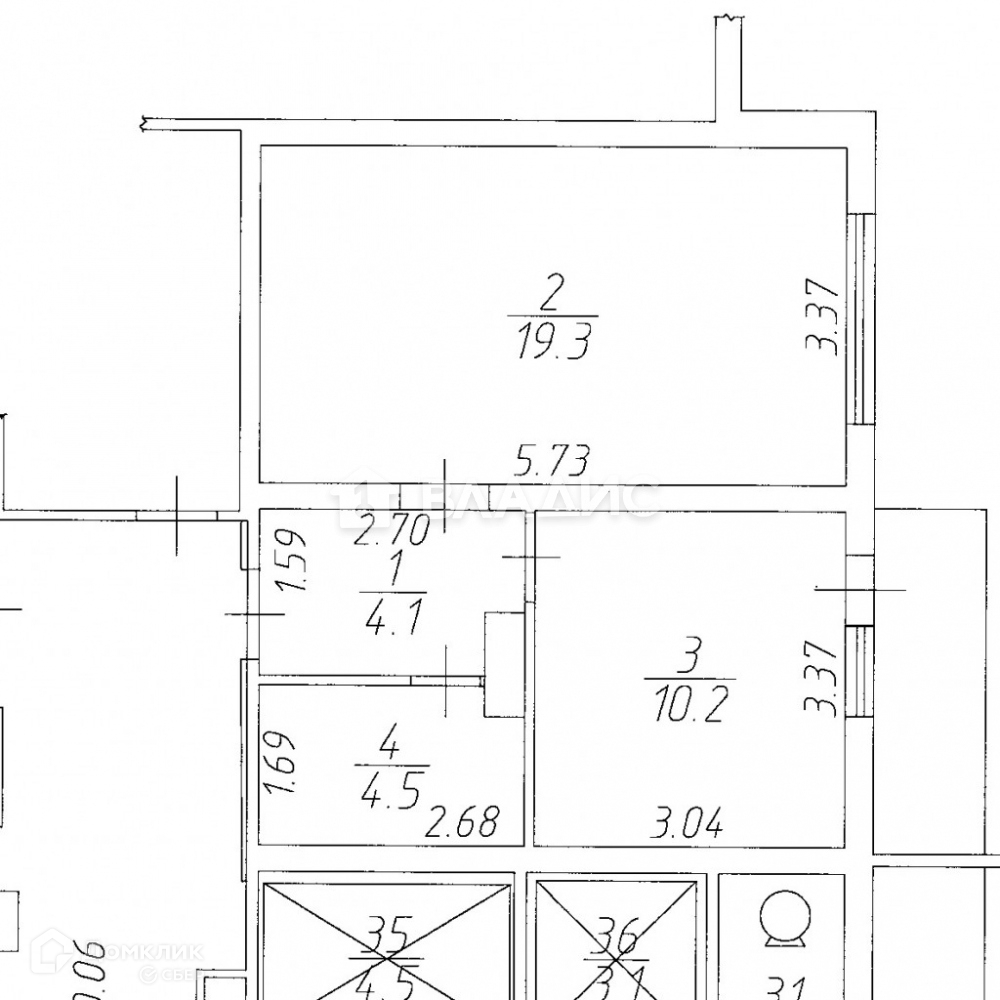 Общая площадь 39 м2