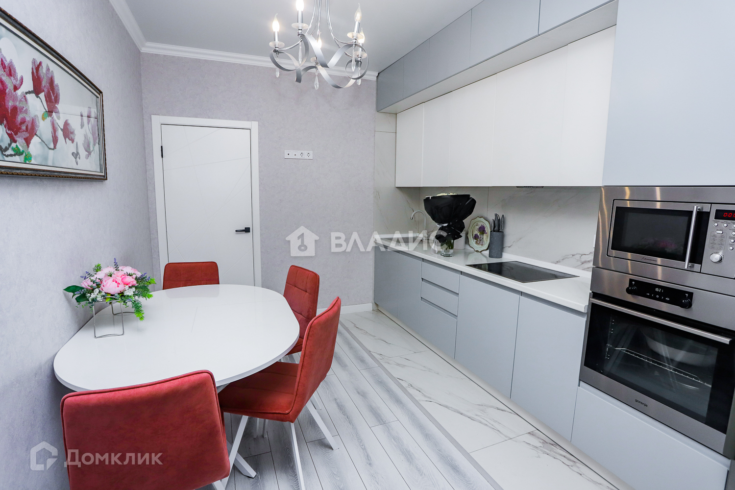 - 2 большие комнаты по 22м с гардеробными внутри по 6м, кухня 12м (в кухне остается гарнитур и встроенная техника), 1 маленькая комната 12м.