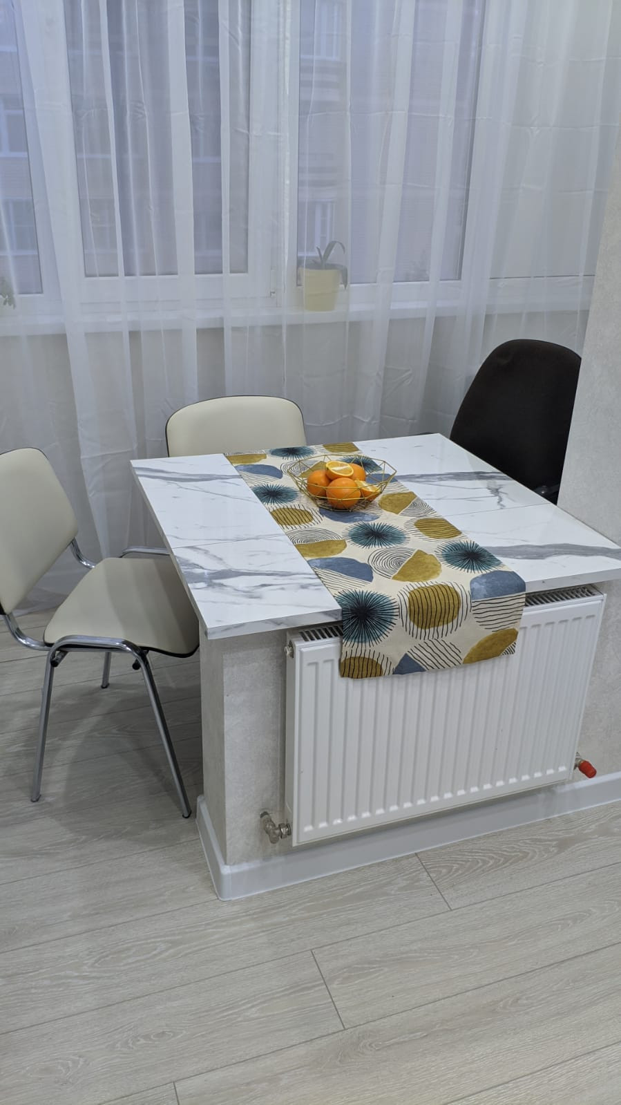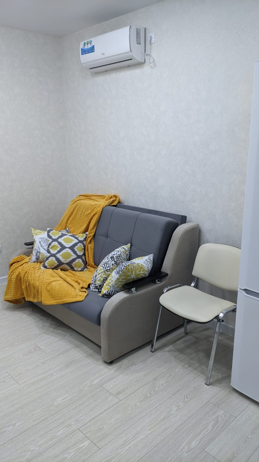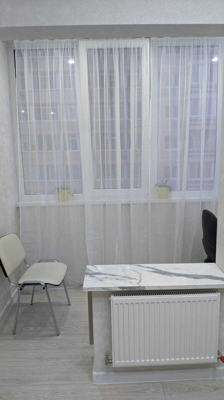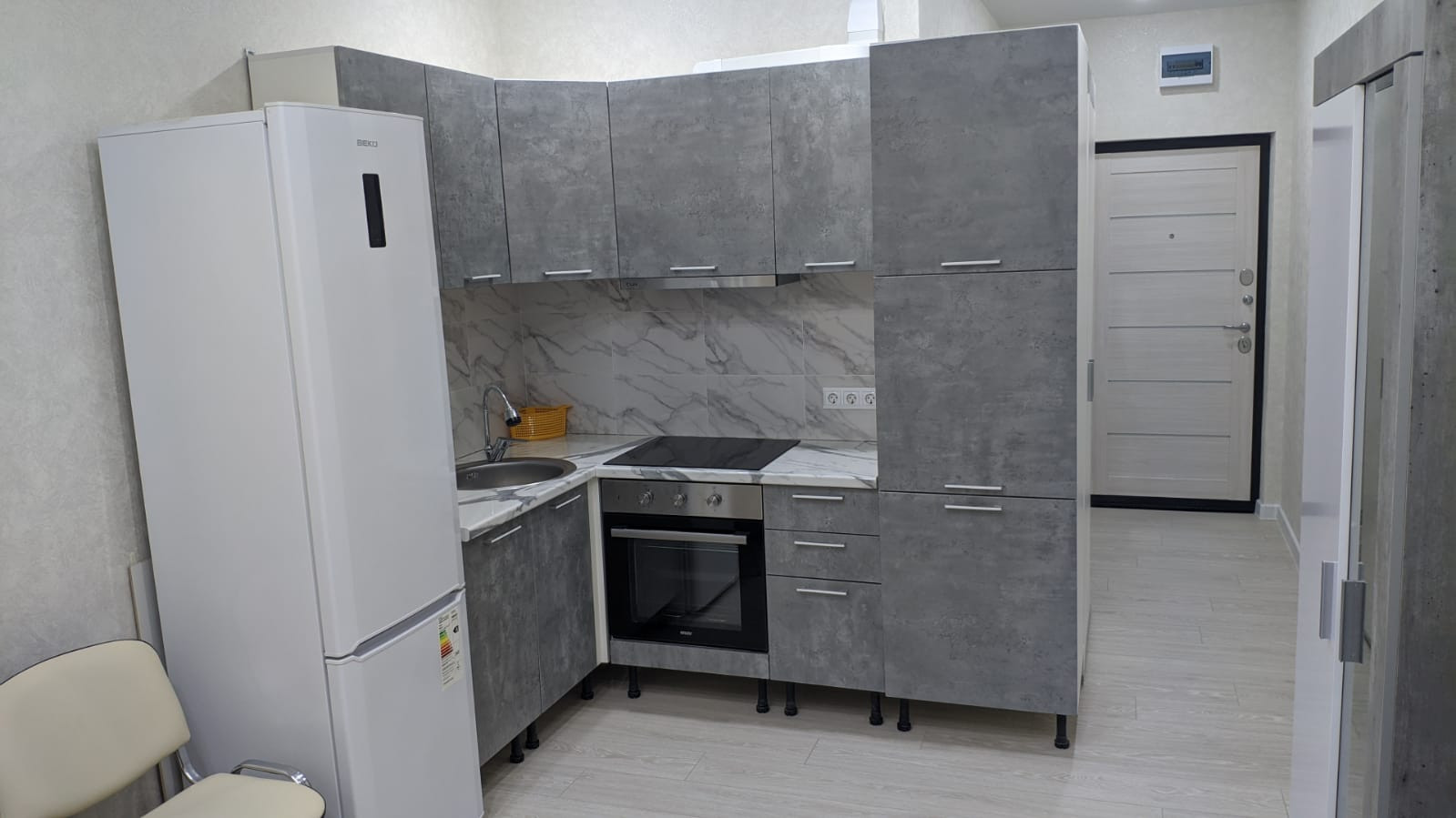 Квартира готова к заселению на все 100%: теплый пол на лоджии, водонагреватель, кондиционер, стиральная машина LG, полноразмерная варочная панель и духовка, холодильник, кухня, прихожая, диван, стулья, компьютерное кресло, ТВ-модуль и декор.