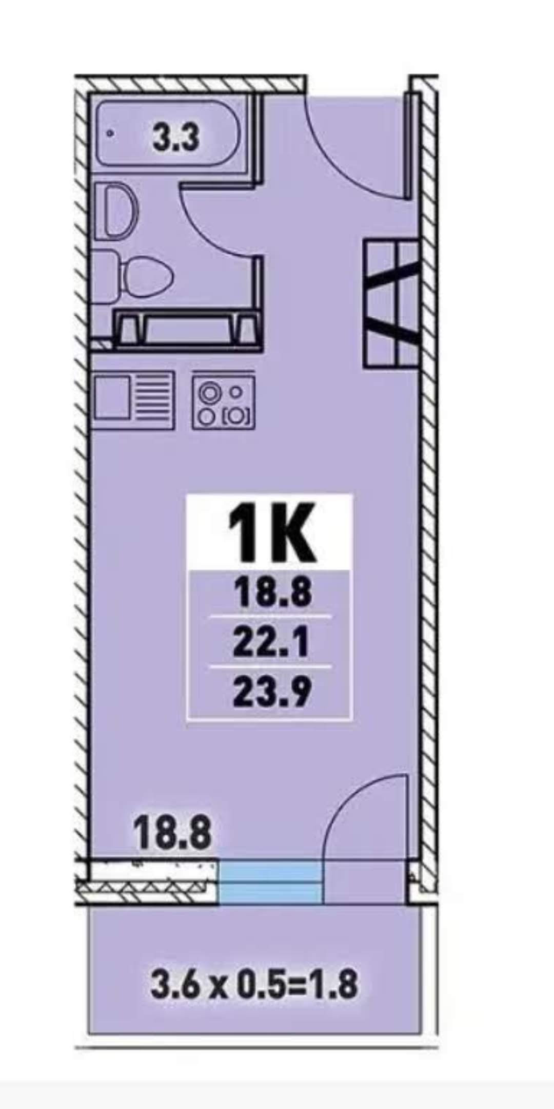 Площадь кухни 3 м2
