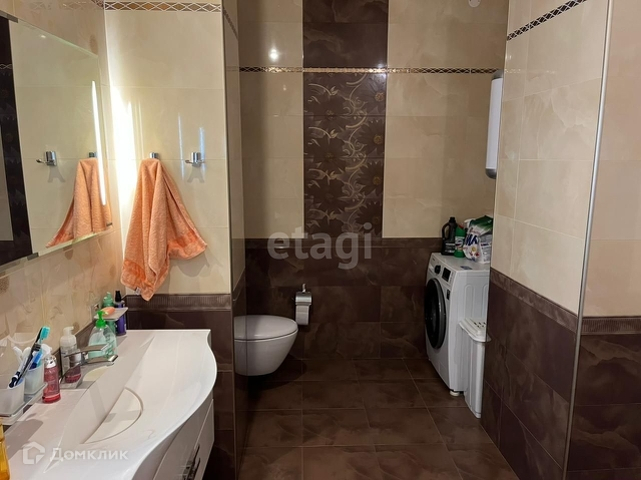 - В санузле широкоформатная итальянская плитка, дорогая сантехника, смесители, водонагреватель.