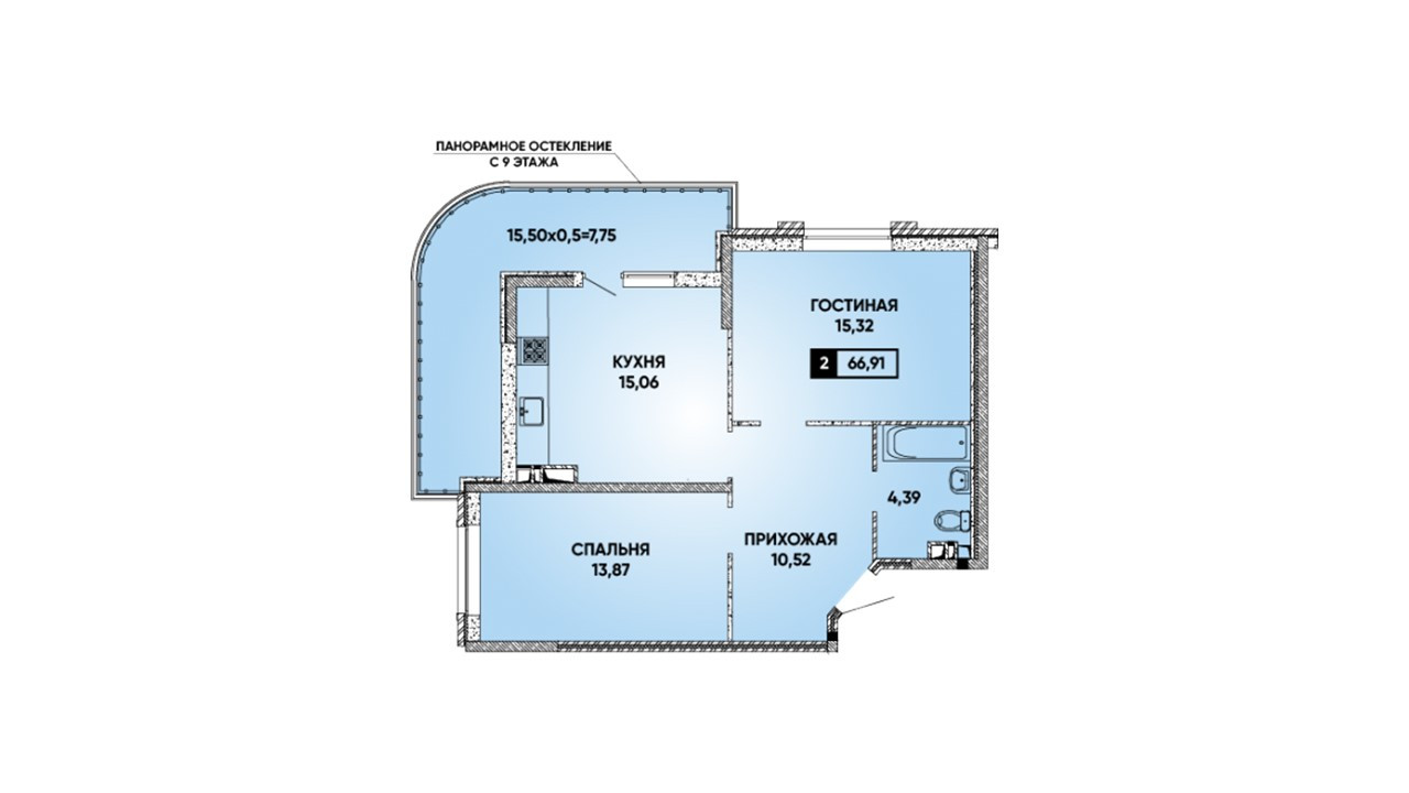 Общая площадь 67 м2
