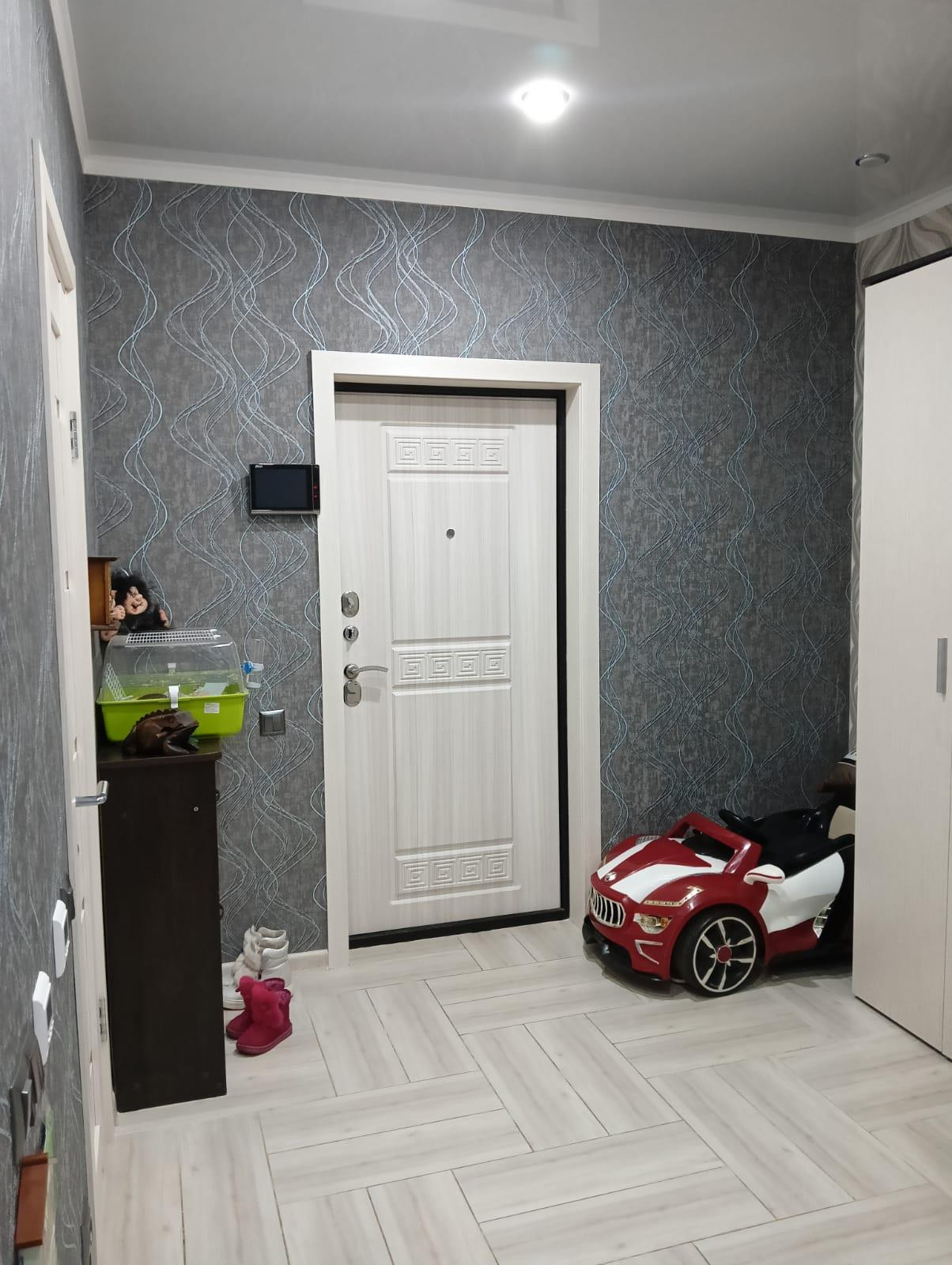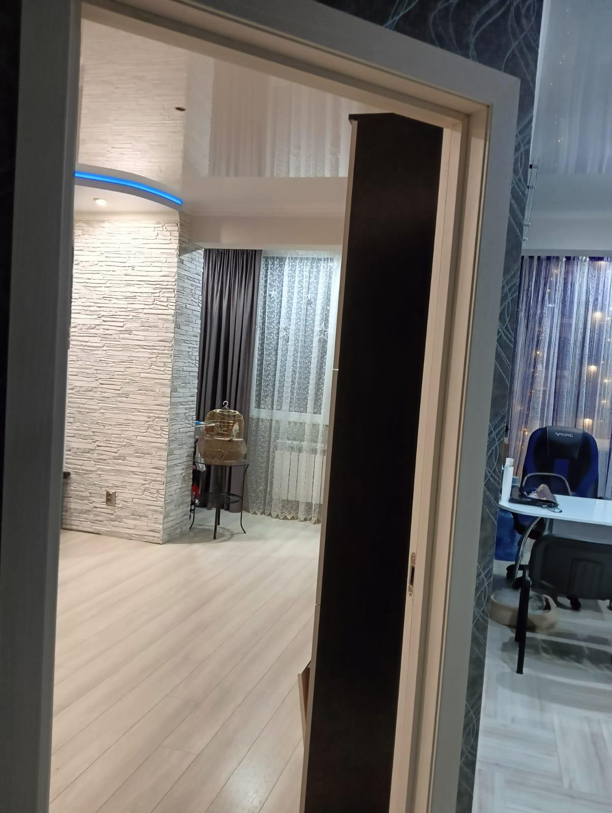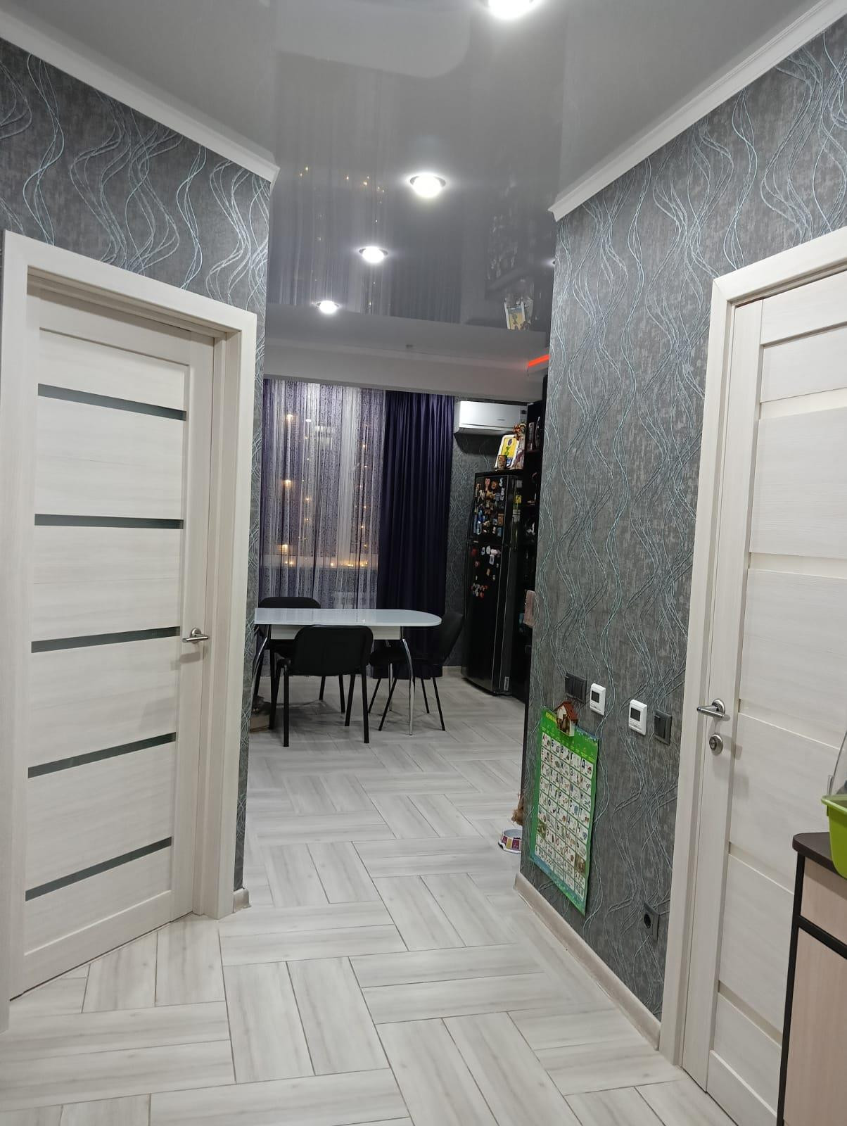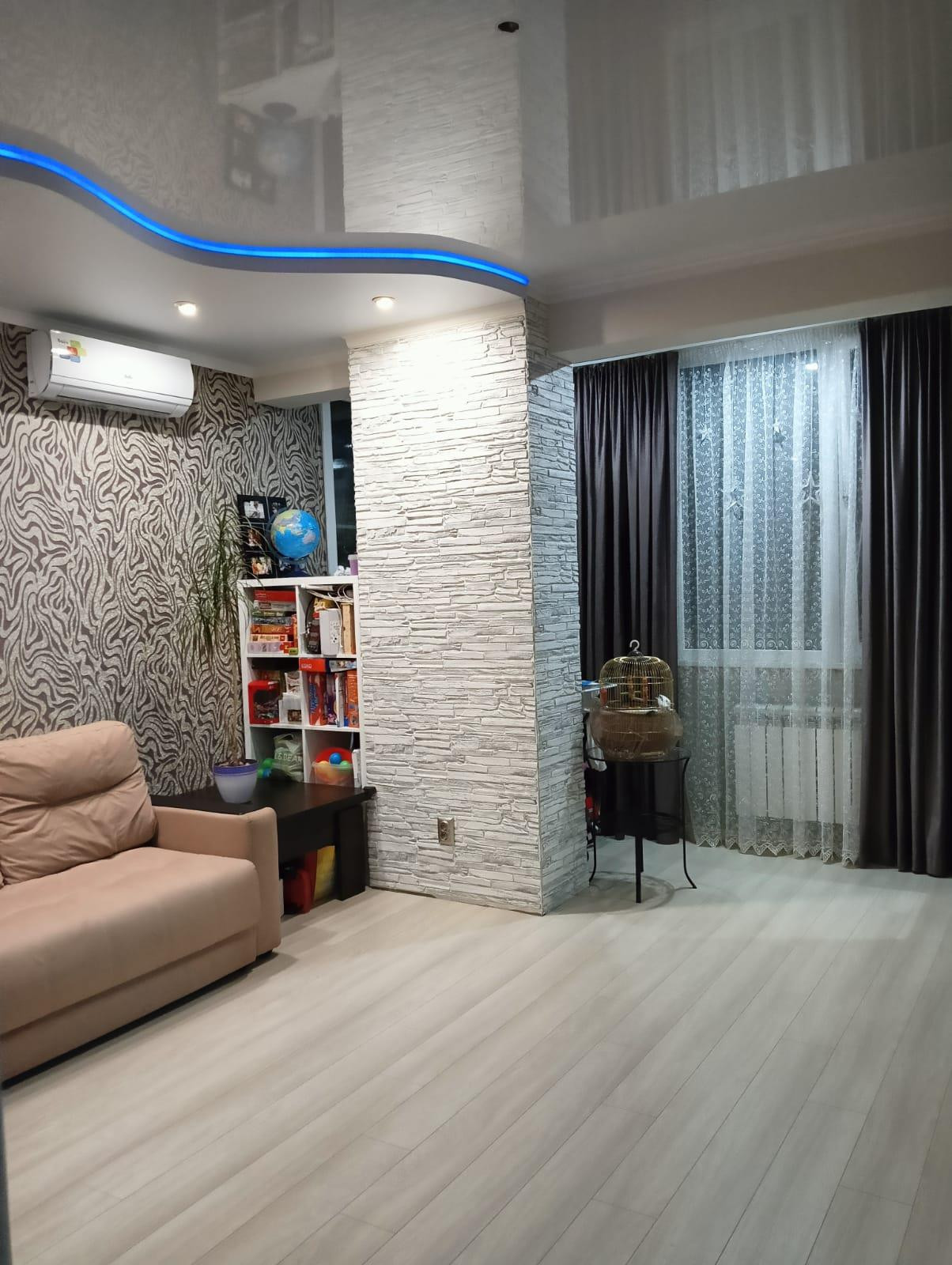 В квартире сделана перепланировка по дизайн проекту с полным сопровождением. Площадь квартиры 48,4 кв.м, комнаты просторные, все продумано до мелочей. Каждая розетка и каждый выключать находится там где это необходимо для удобства.  По квартире сделана очень качественная электропроводка. Входная дверь очень качественная, сделана изоляция слышимости с подъезда нет. Трехкамерные стеклопакеты.  Санузел совмещённый, на стенах хорошая дорогая плитка. Кухонный гарнитур со всевозможными доводчиками и фурнитурой и техникой. Балкон совмещён с комнатой и кухней полностью. Имеется кладовка на пару с соседями.
