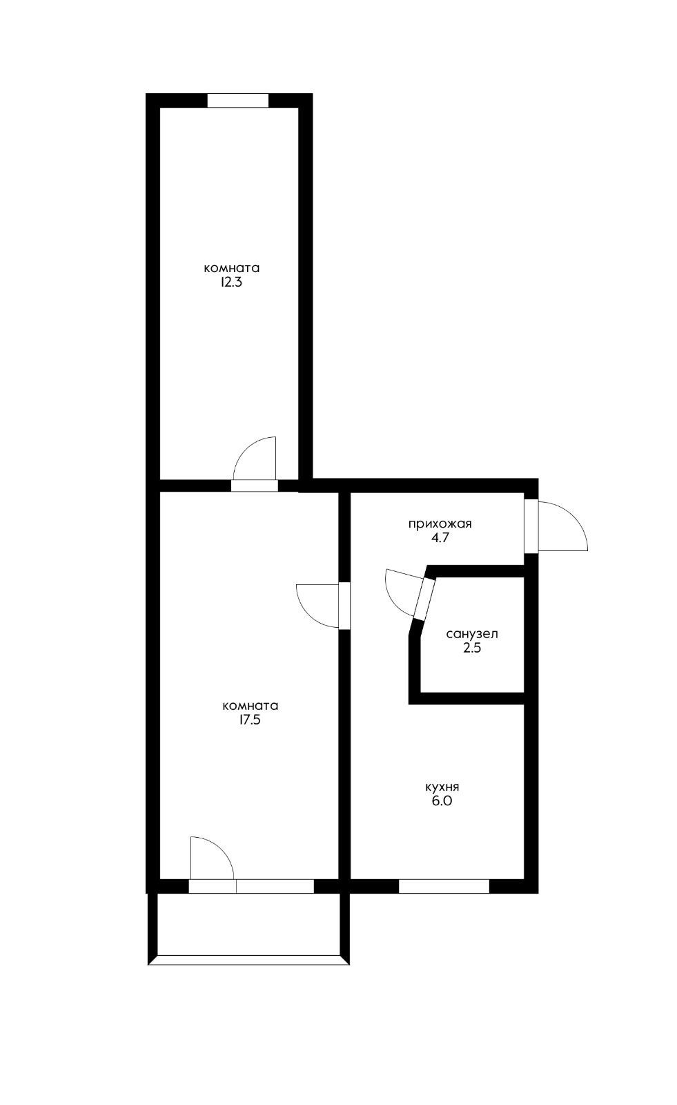 Общая площадь 43.7 м2