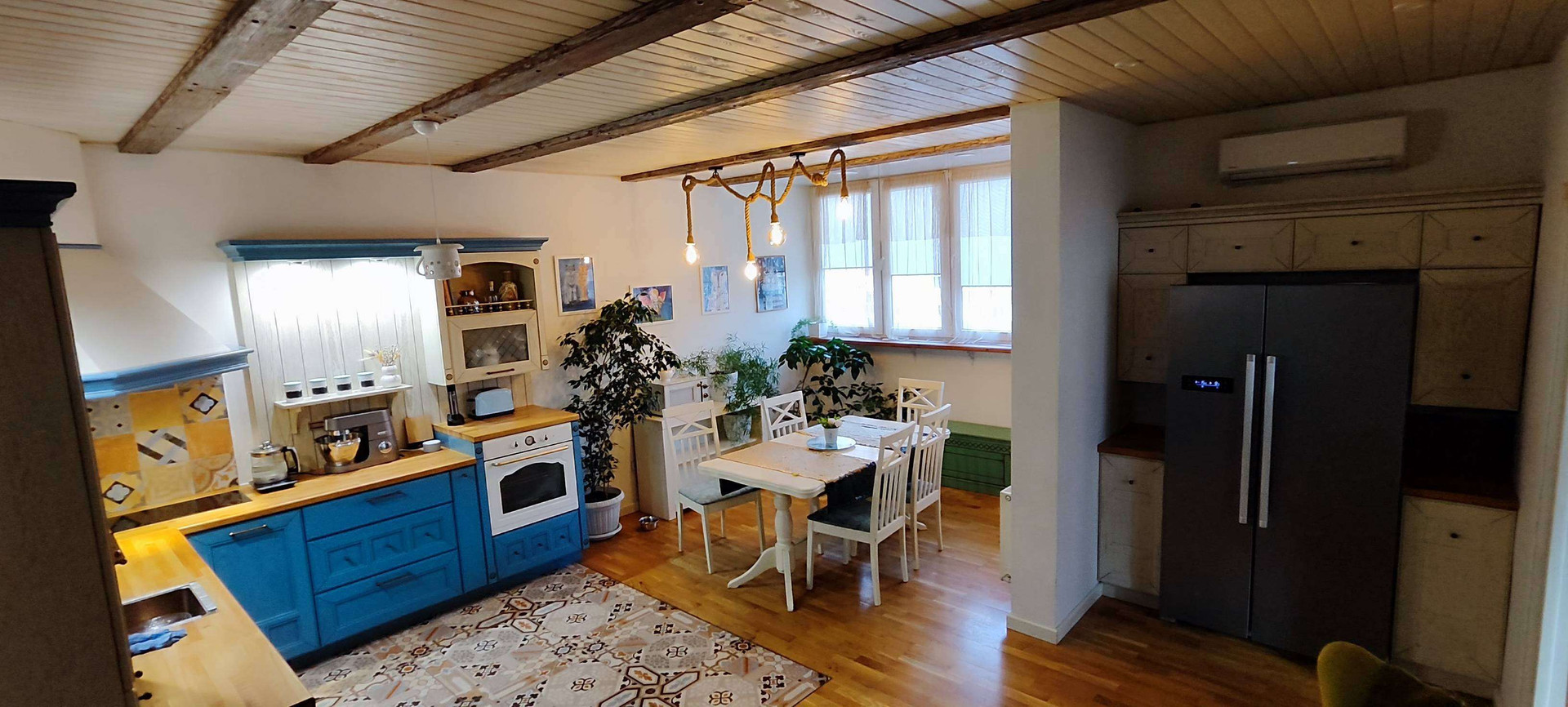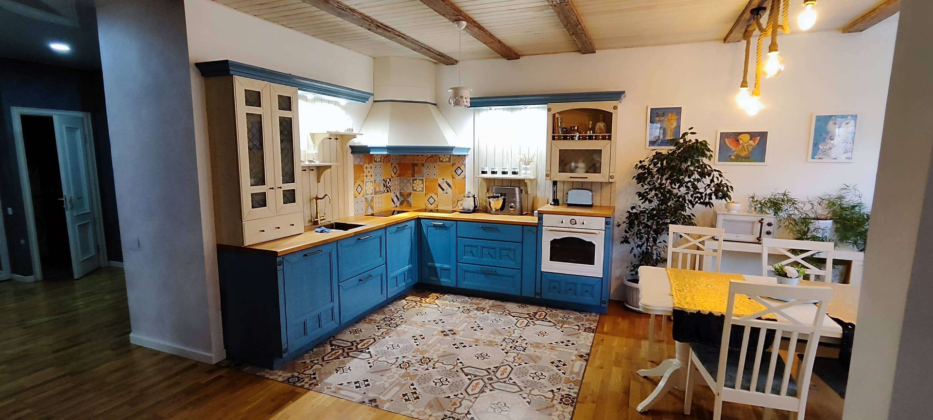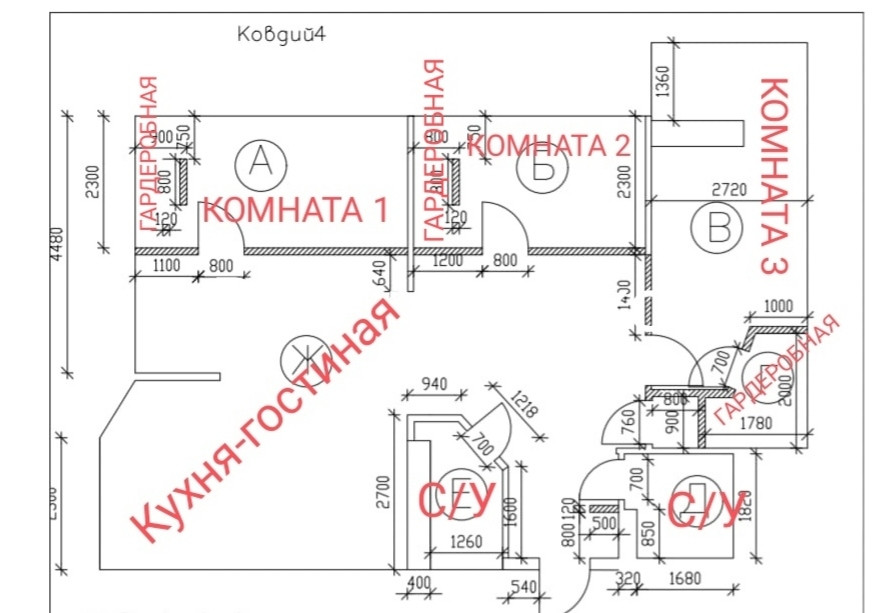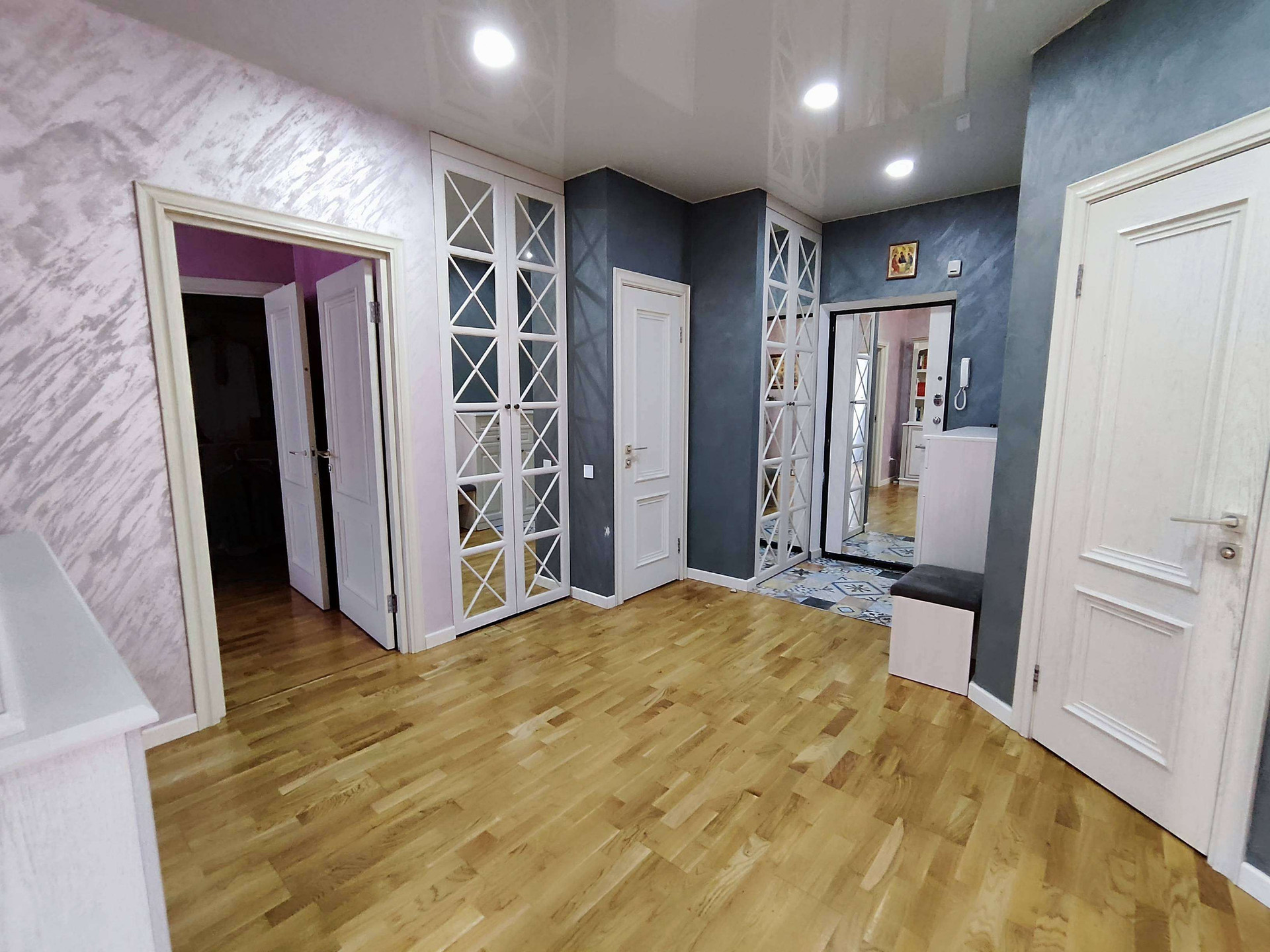 Три полноценные спальни + большая кухня-гостиная. В каждой комнате гардеробная.