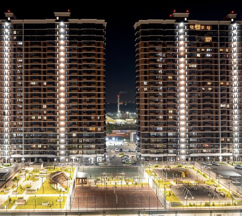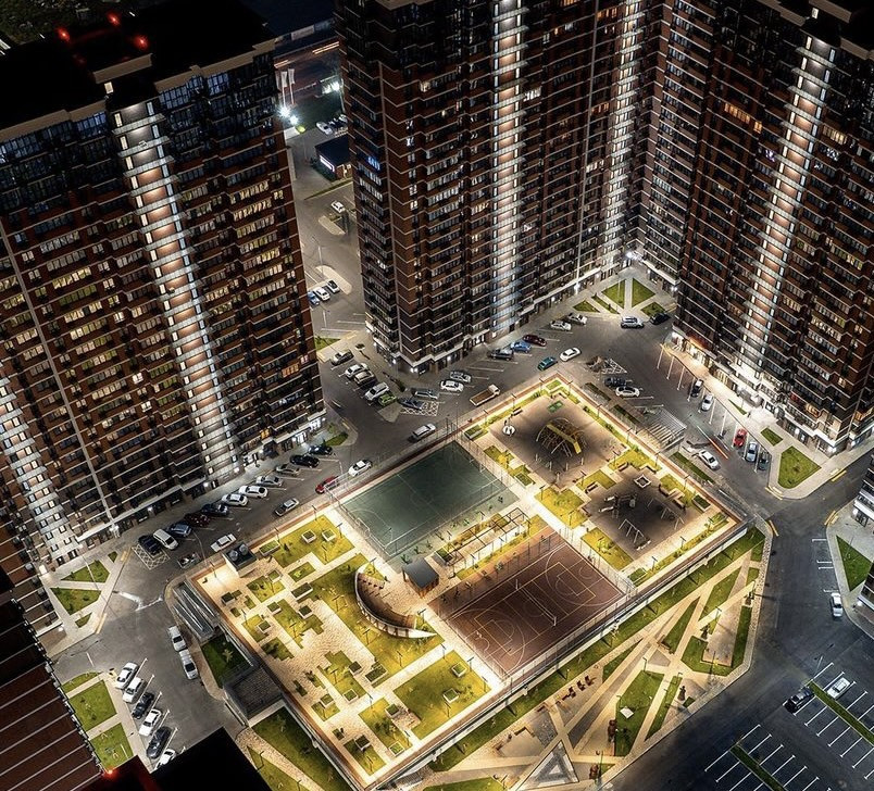 Закрытая территория, двор с ландшафтным дизайном. Во дворе амфитеатр, спортивные и детские площадки, аллеи.