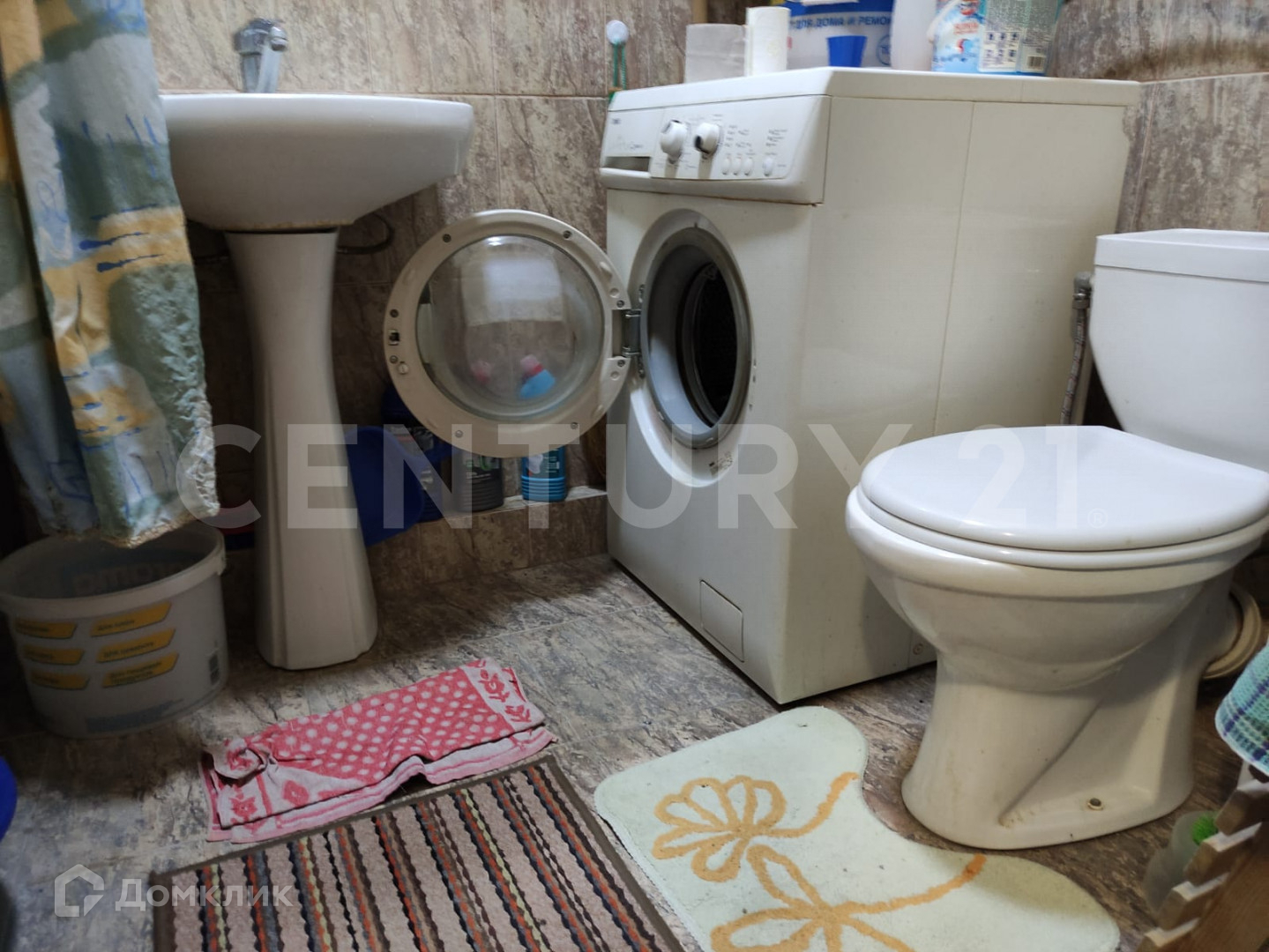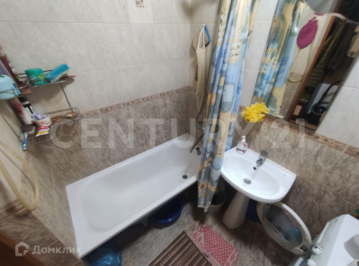 Санузел совмещенный-3,6м2 , правильной формы .Установлена металлическая ванна, раковина, унитаз. Стены и пол- кафель. Остается стиральная машина.