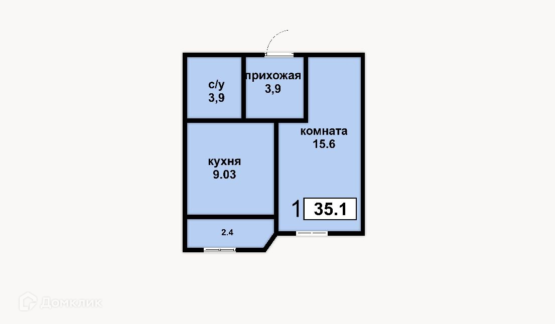 Общая площадь 35.1 м2