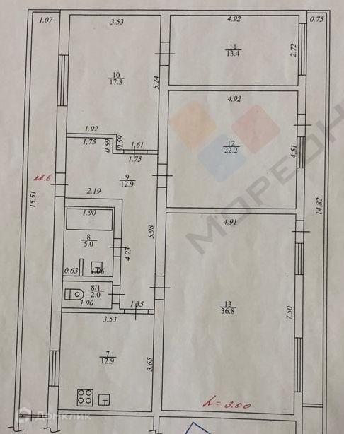 4-комнатная квартира, 150 м2, этаж 2 / 3, на продажу в Краснодаре, улица Чкалова, 11