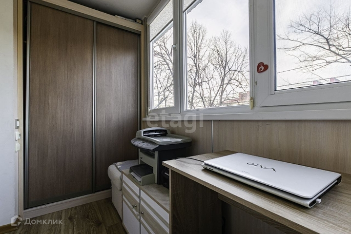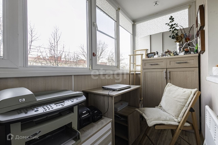 Из комнаты выходит увеличенный площадью и утеплённый балкон со встроенным шкафом площадь балкона позволяет использовать его, как полноценный кабинет или отдельную гладильную комнату.