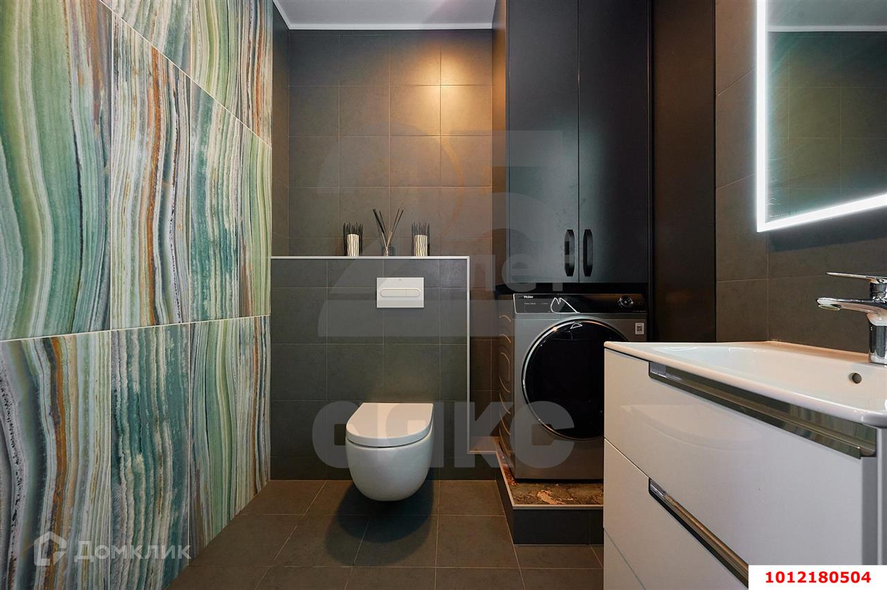 Сантехника Roca в двух с/у, смесители Hansgrohe. В гостевом с/у установлен шкаф под стиральную машину. Установлена система очистки воды. Сделан вывод под бойлер, место в шкафу под бойлер 80 л.