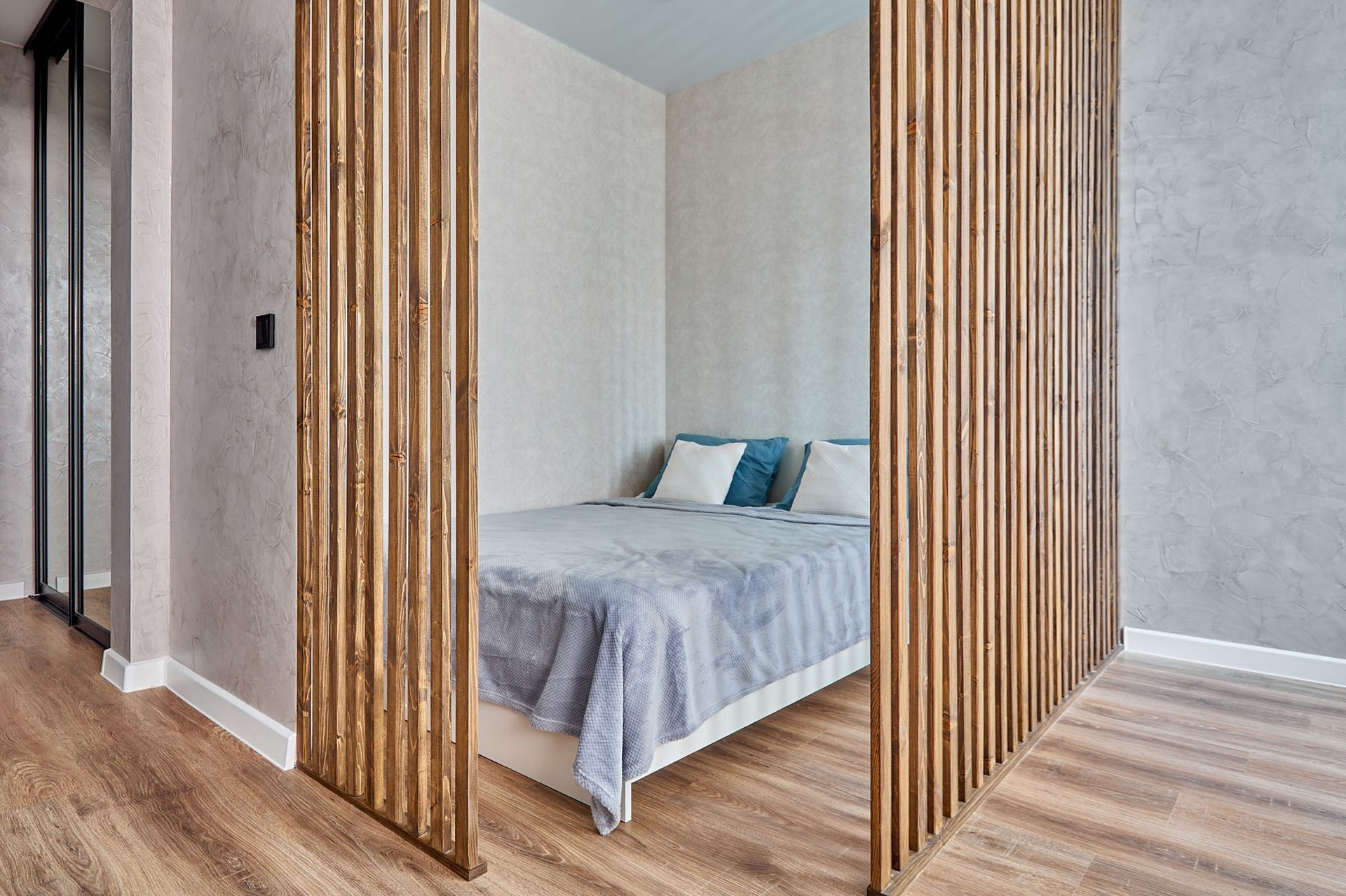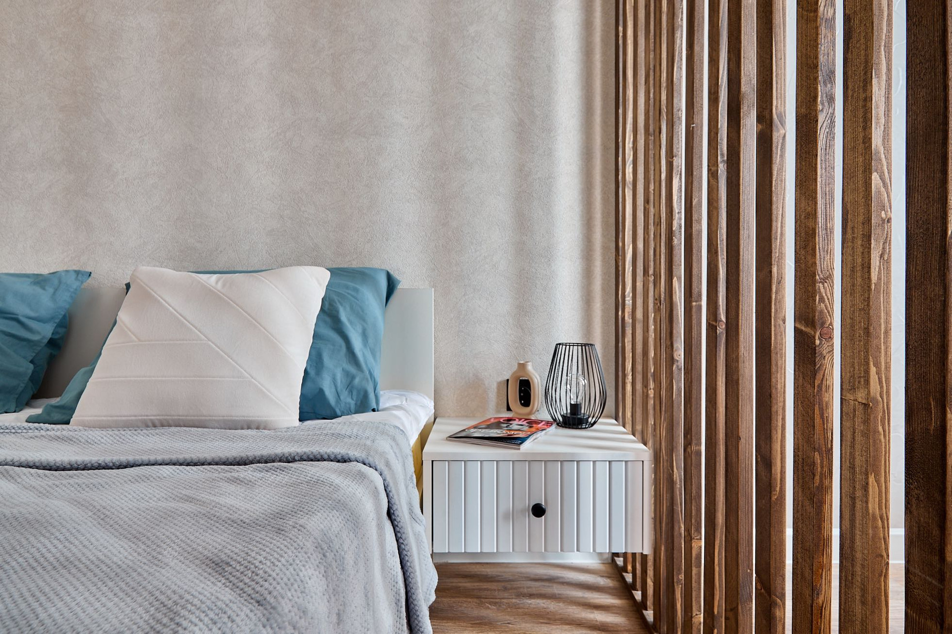 3. Спальная зона с кроватью с удобным матрасом и прикроватной тумбой
