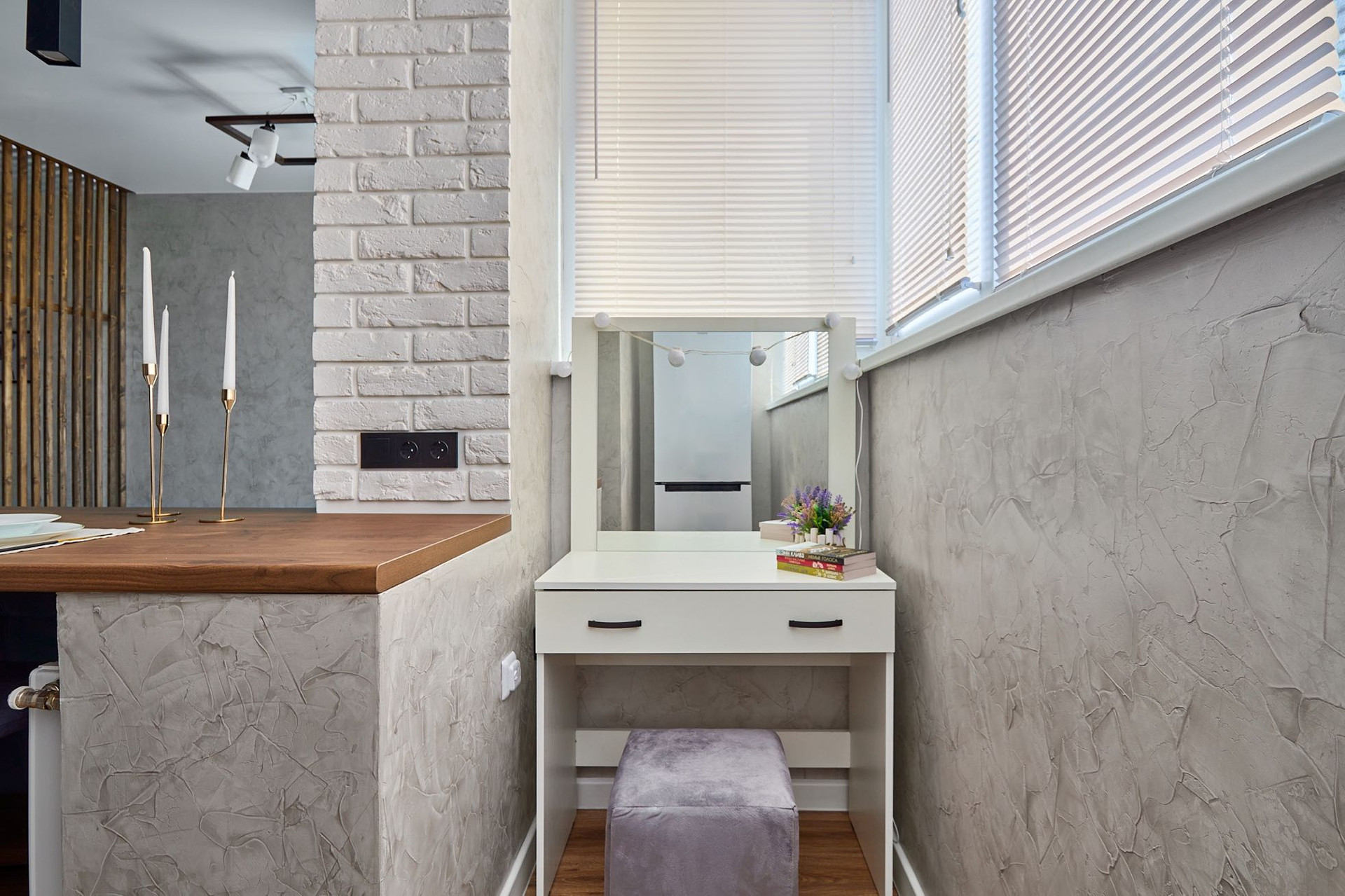 На балконе предусмотрены теплые полы для того, чтобы комфортно находится на нем в холодное время года. На балконе расположен туалетный столик с зеркалом с подсветкой, который также можно использовать как уютное рабочее место. В квартире остаётся вся мебель и техника. Стены отделаны венецианской (антивандальной) штукатуркой! Квартира идеально подойдет как для собственного проживания, так и для сдачи в аренду.
