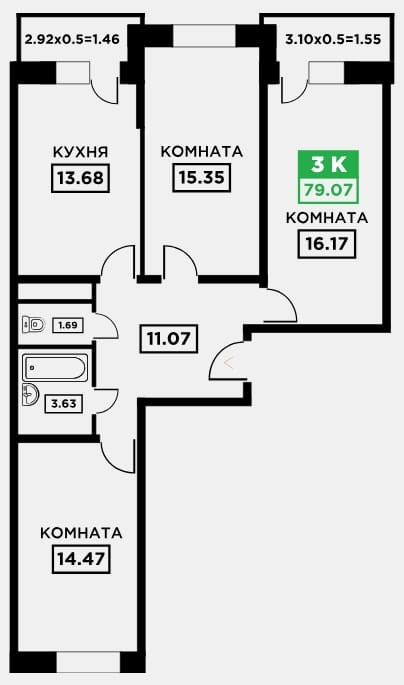 Общая площадь 79 м2