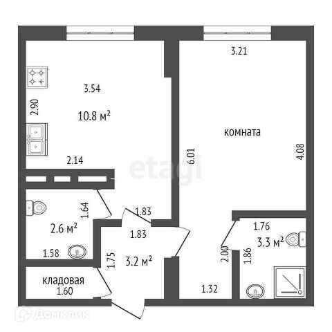 Площадь кухни 10.8 м2