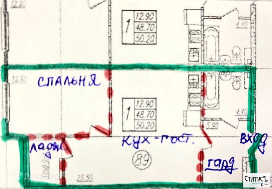 Квартира с большая прихожей с местом под  шкаф-купе,кухня-гостиная 25м2, с двумя окнами,отдельная спальня 12м2.