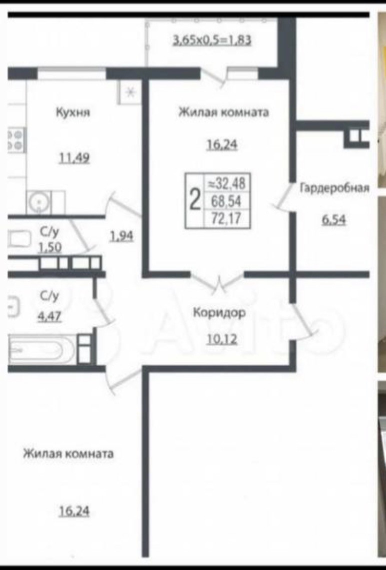Общая площадь 72.17 м2