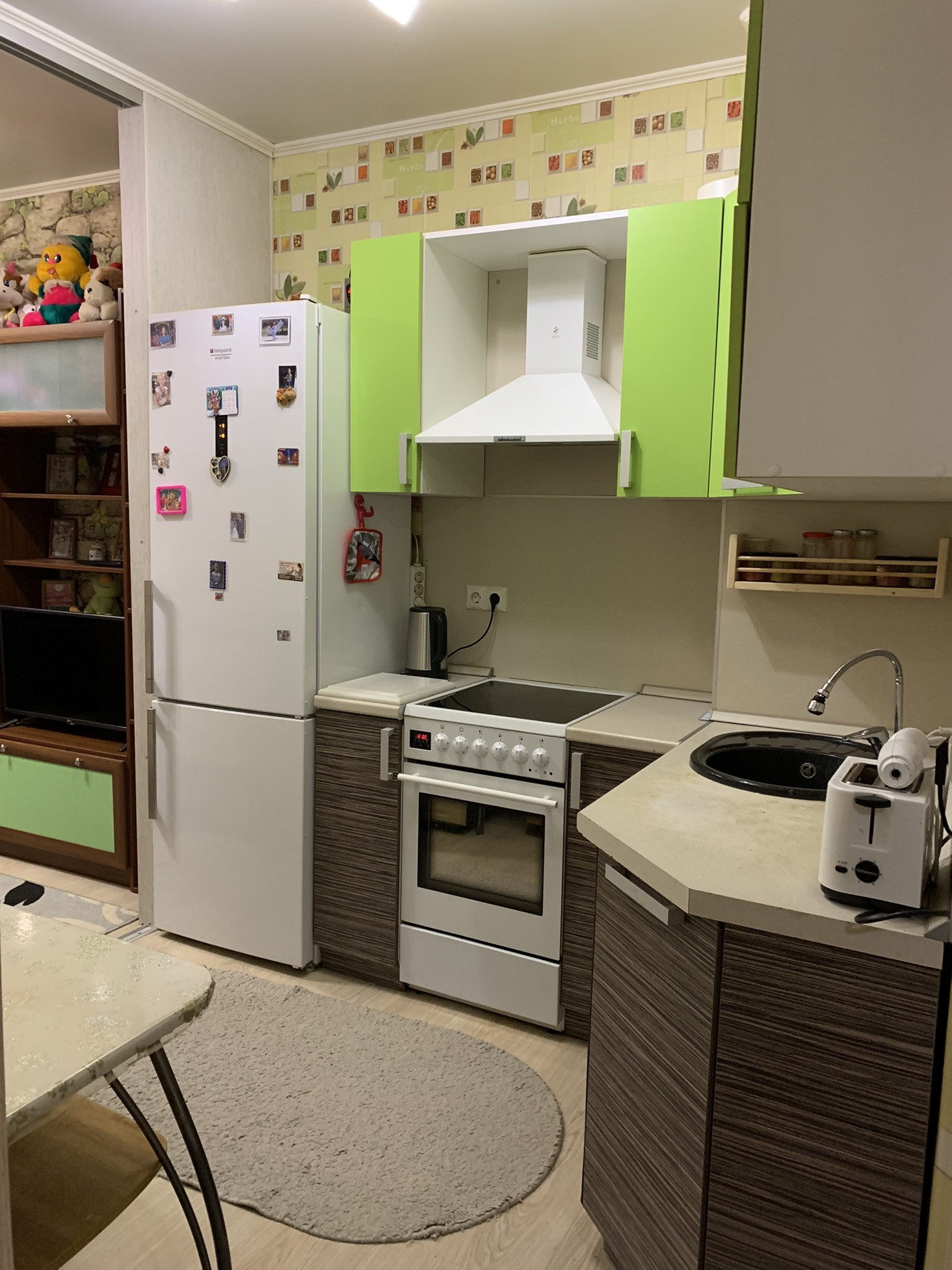 Из части кухни сделали дополнительную комнату. (межкомнатная перегородка легко демонтируется).