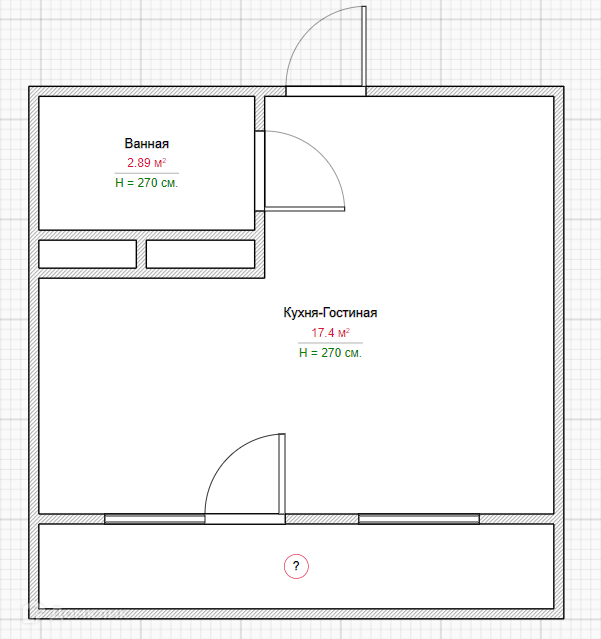 - Площадь объекта 21м2. Высота потолков 2,7 м. Кухня-гостиная 17.4м2.