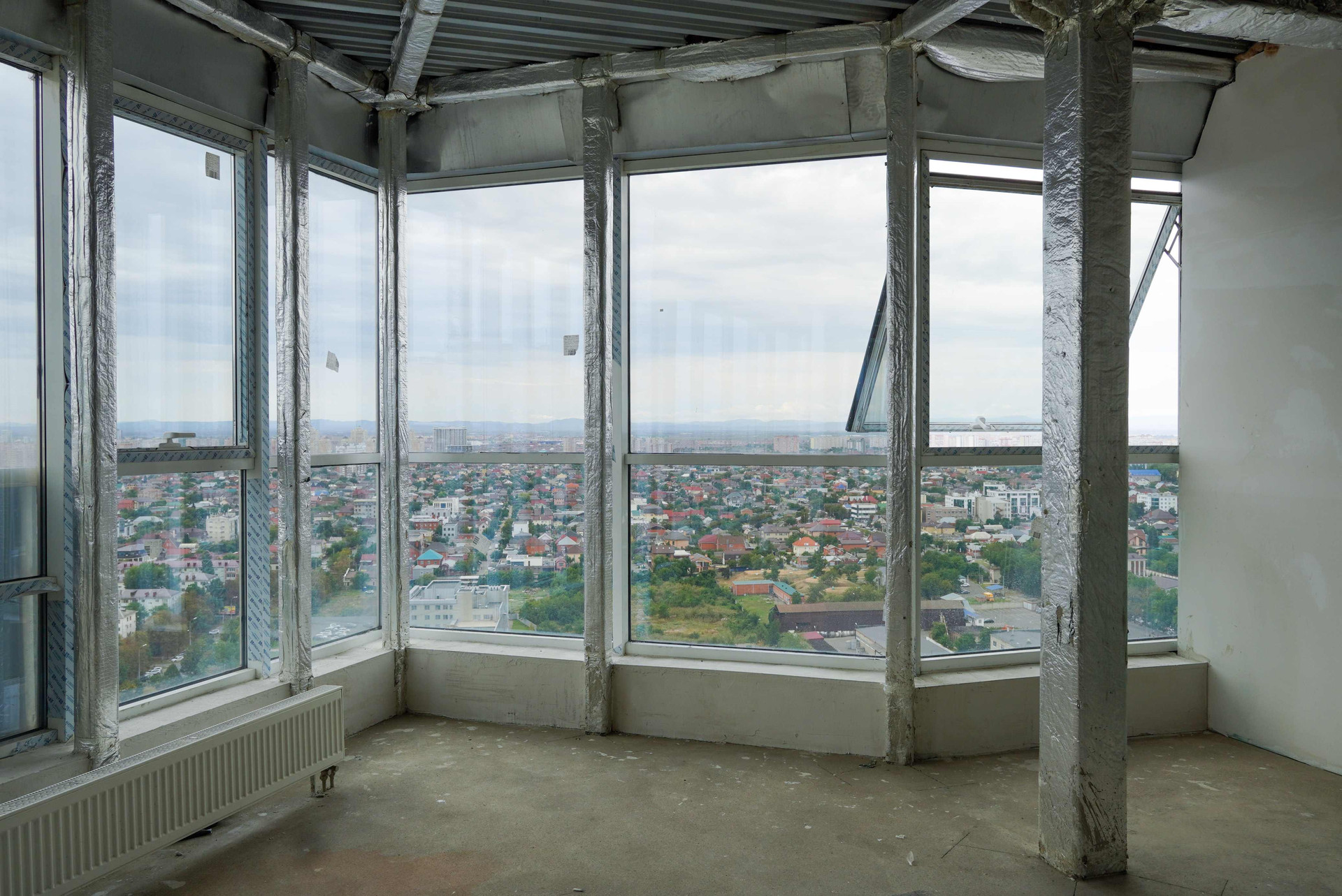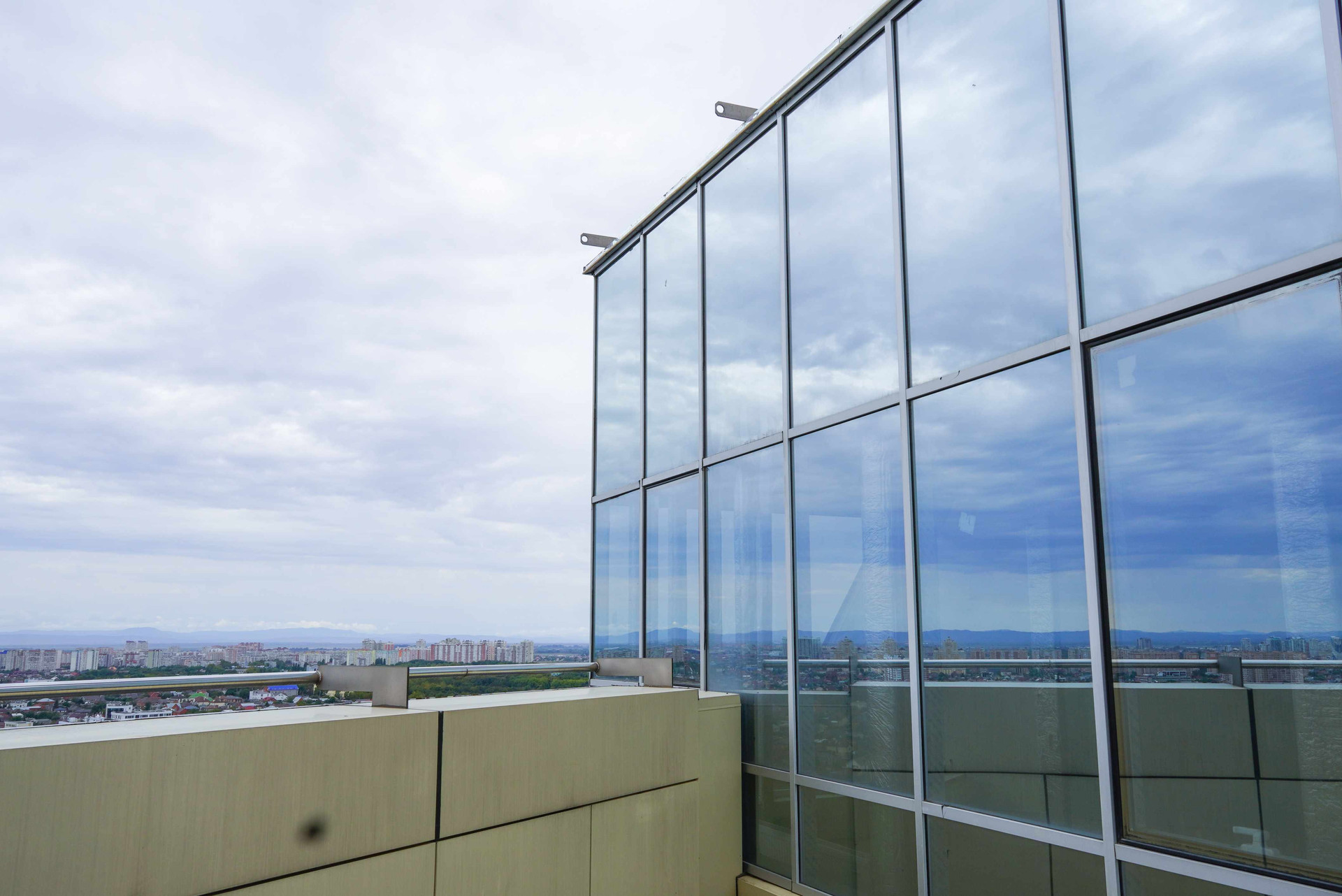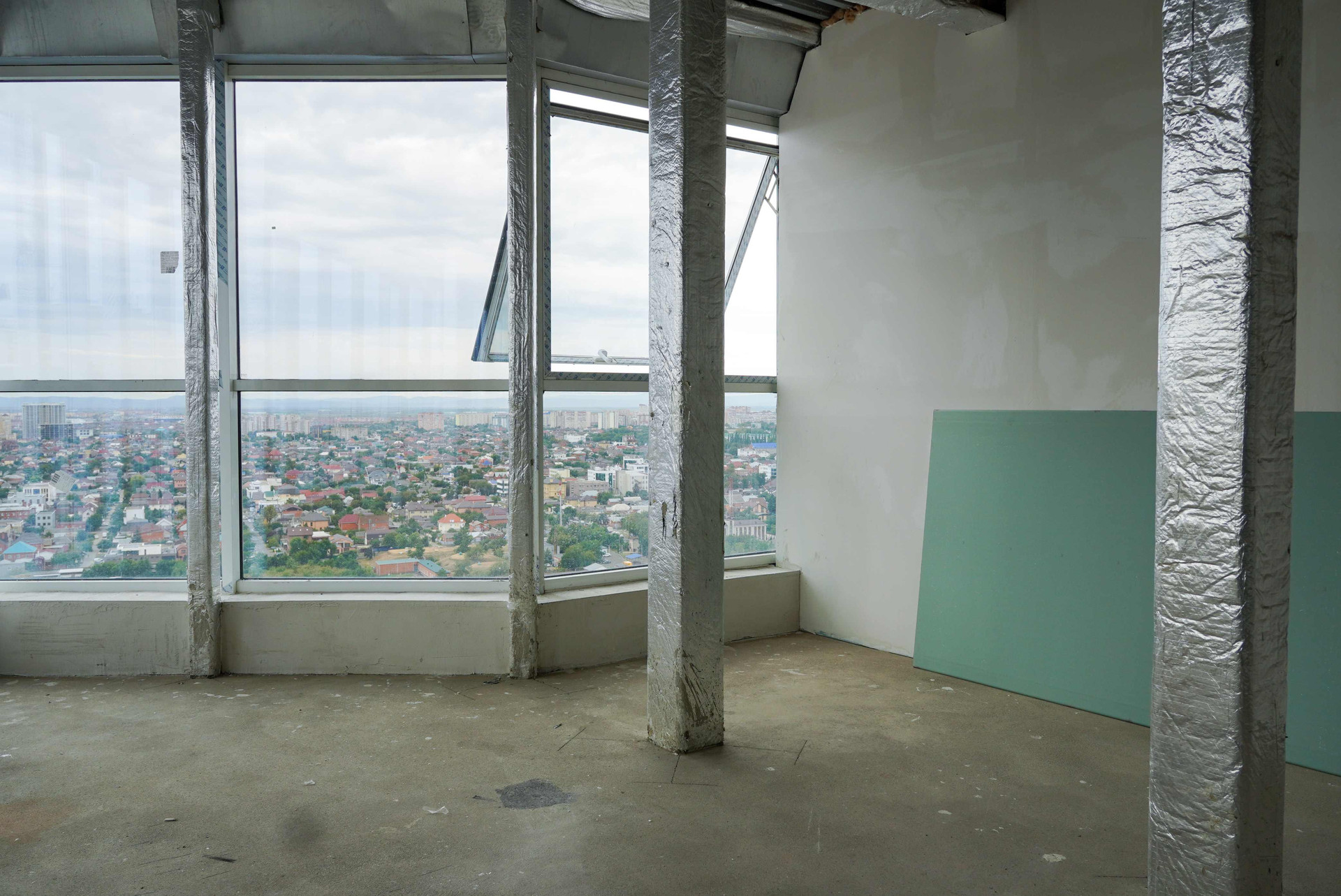 Прекрасная квартира с панорамным остеклением. Из каждого окна открывается превосходный вид на город. Вдалеке видны горы. Открытая терраса 32,1 м² позволит создать превосходную зону отдыха. Кухня-гостиная 44,8 м² станет местом для встреч с друзьями и родственниками. Можно каждый день собираться семьей за завтраками, обедами или ужинами. Спальная комната 73,8 м² за счет высоких потолков 2,85 кажется еще просторнее и светлее. В прихожей есть место для шкафа. Санузел совмещён: 11,7 м².