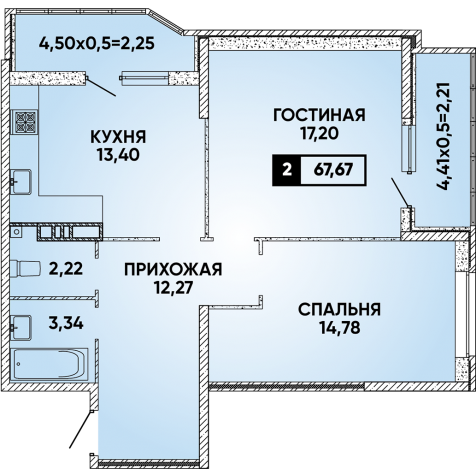 Общая площадь 67.67 м2
