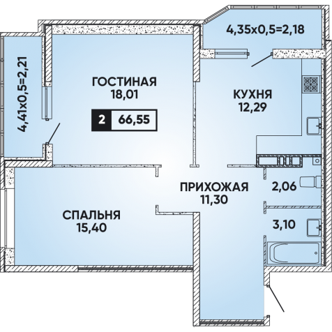 Общая площадь 66.55 м2