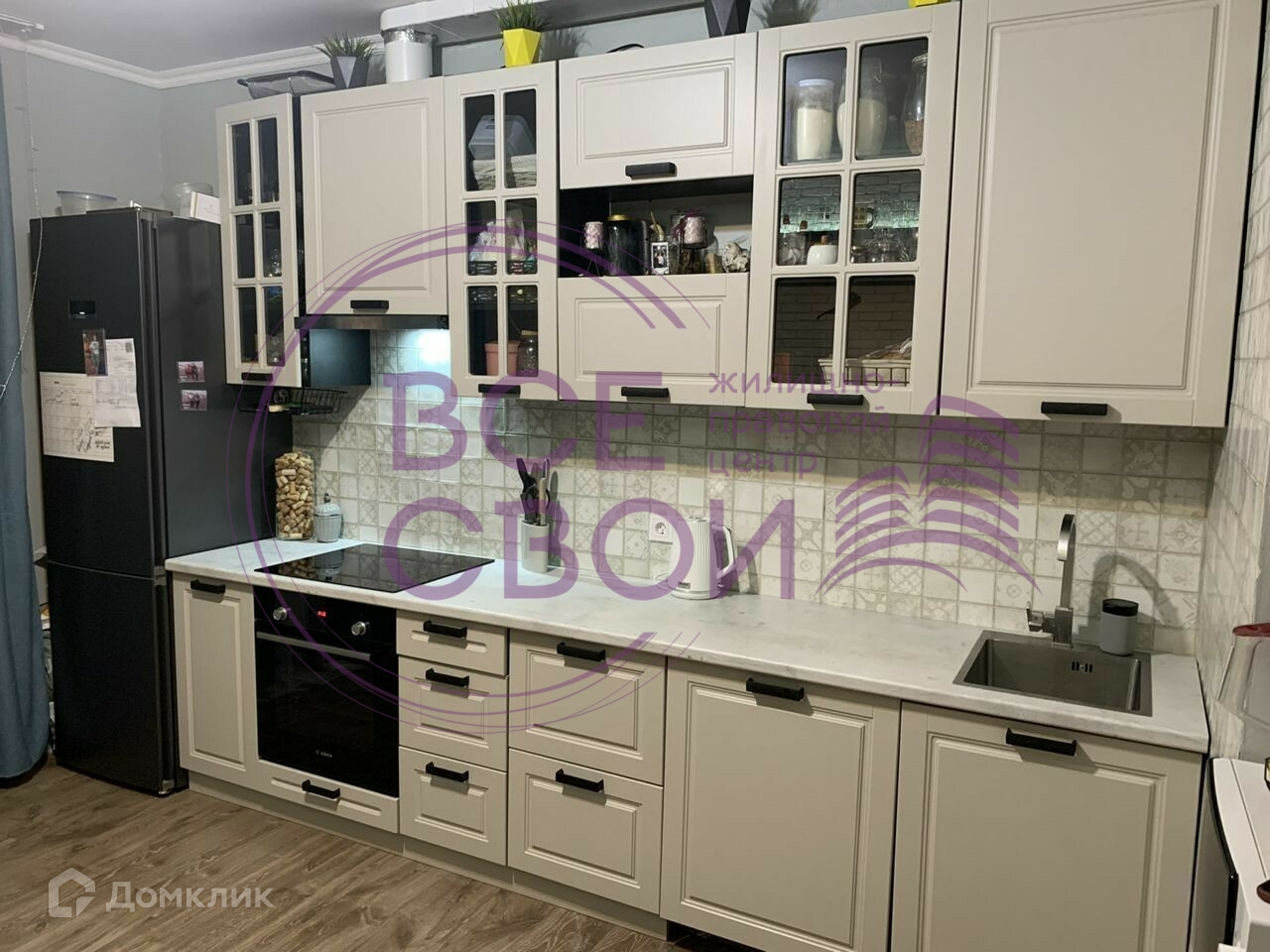 В квартире остаётся новая кухня, варочная панель и духовка, 2 сплит системы, в туалете весит бойлер на 100 л, в гардеробной сделаны стеллажи и выведена стиральная машина, на балконе также заделан стеллаж, полы ламинат, освещён и есть розетка, дворе поликлиника, детские площадки, в шаговой доступности рынок, гипермаркет и остановки общественного транспорта.